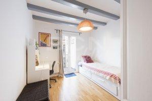 Enviably located in vibrant district of Poble Sec in Barcelona, the property is in a quiet residential street and set on the fourth and last floor of a beautiful period building of 1890. The neighborhood hosts a multitude of amenities, venues and shops. The area is also home to a wealth of parks and famous sightseeing places. The property is well situated near Blai pedestrian street and several Poble Sec’s charming squares with cafés, bars and restaurants. The nearest underground station is Parallelo. There are parking options for about 150 € / month, close to the property.