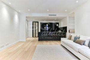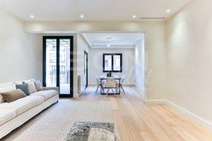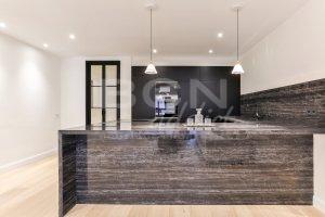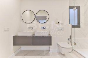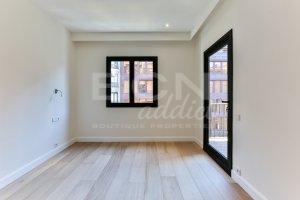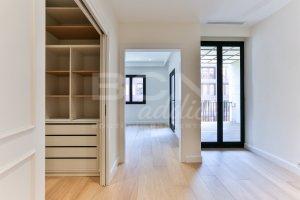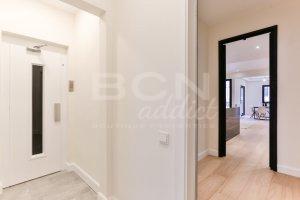A part of former Isabel Llorach’s residence, the apartment is located on the 4thfloor, along with just one more flat. A small lobby, decorated with high-quality materials, forms common zone.Entering, you reach a vast foyer that gives access to different areas of the property. A long spacious corridor leads inside the apartment and can be adjusted to your personal needs. In the end of this corridor, there are two bedrooms and a bathroom between them, altogether forming one of the night zones.