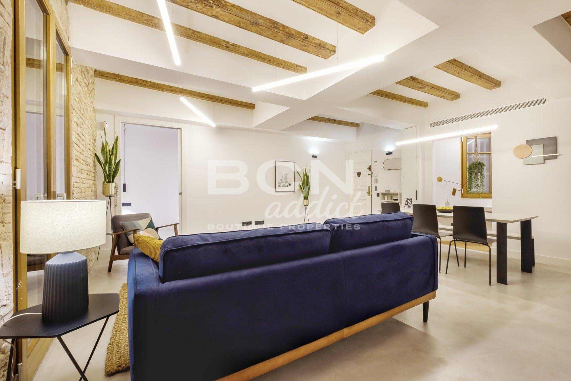 Search In the heart of the old town of Barcelona, next to Plaça Catalunya, we find this fabulous apartment of 100 sqm completely renovated with high quality materials and details.