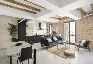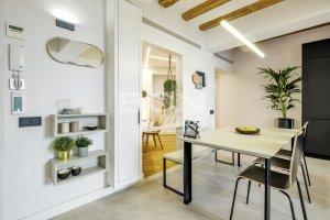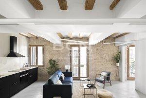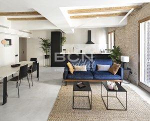 In the heart of the old town of Barcelona, next to Plaça Catalunya, we find this fabulous apartment of 100 sqm completely renovated with high quality materials and details.
