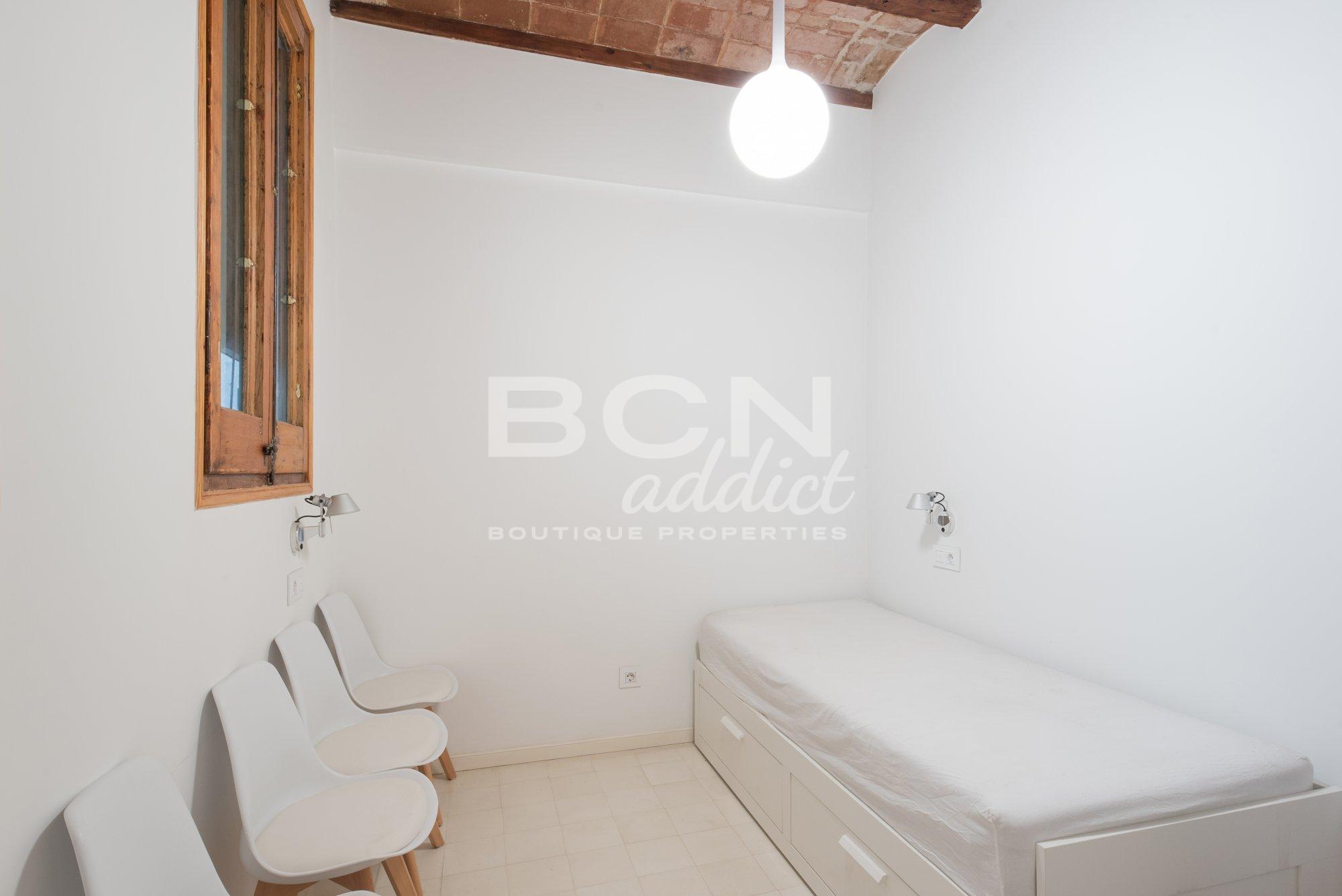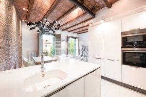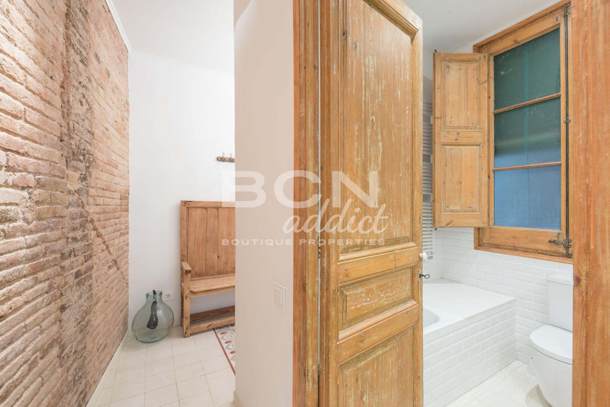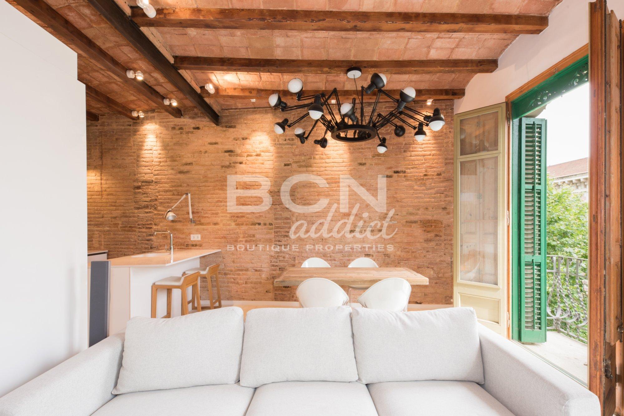 The property of 92 m2 has being totally refurbished in 2014 and combines historical elements (genuine hydraulic floor, original carpentry, exposed brick walls and Catalan vaulted brick ceilings) together with modern interiors and premium materials using well-known brands. The apartment is equipped with several down-light inset or visible lighting systems, air conditioning with 2 splits of dual functions cooling and heating, gas boiler for hot water and radiators, double glazed windows or tailor-made kitchen furniture and central island with fitted appliances.