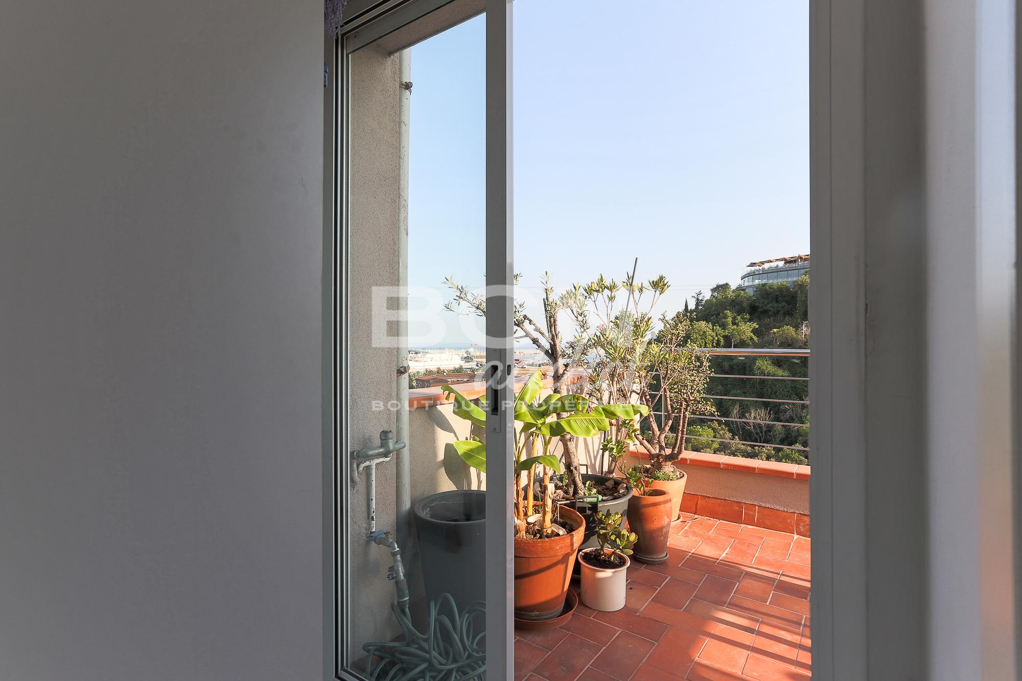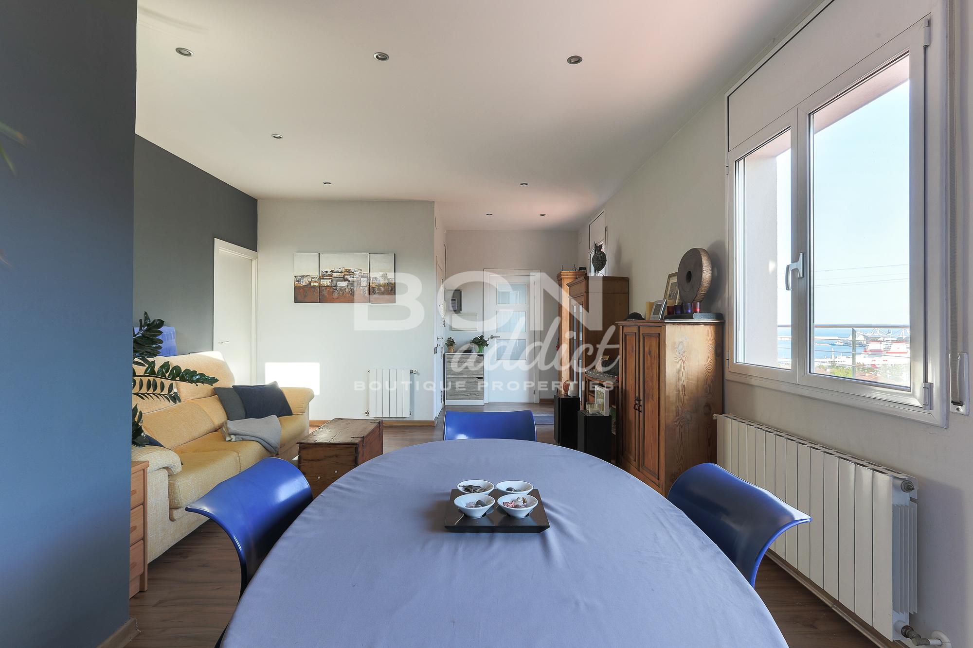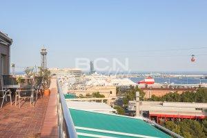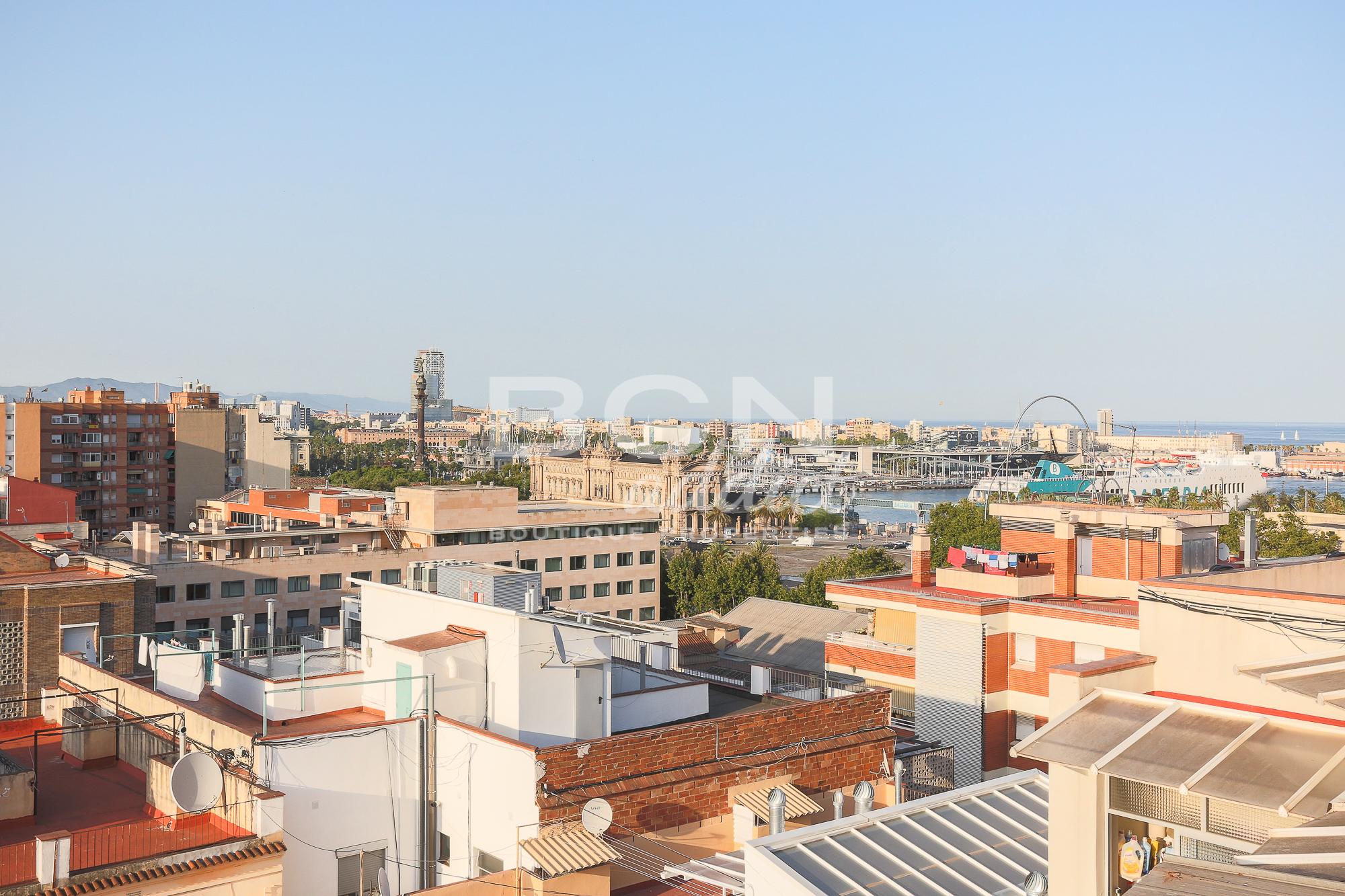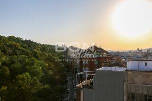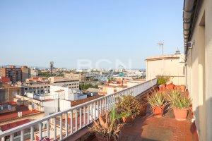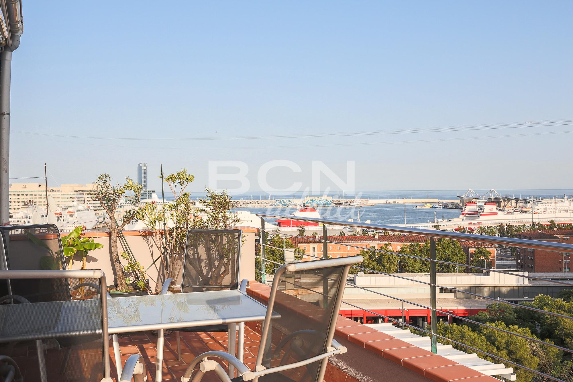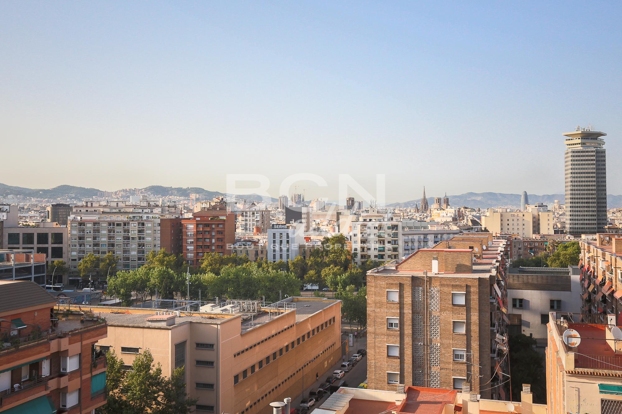 The 1968 building is very well located, just in front of the park so it has an unobstructed view, without vis a vis, at 360 degrees. The attic has 94 m2 built interiors plus 55m2 of terraces. It is in good condition since it has been renovated 10 years ago. The kitchen, living room and dining room are combined in a large space that offers direct access, thanks to 5 large window doors, to a generous terrace of 35 m2 at the same level. The southeast-facing exterior area seems to be a natural extension of the house and offers panoramic views of the autonomous port and the green spaces of the Montjuïc hill. You have a lot of privacy being the last and tenth floor.