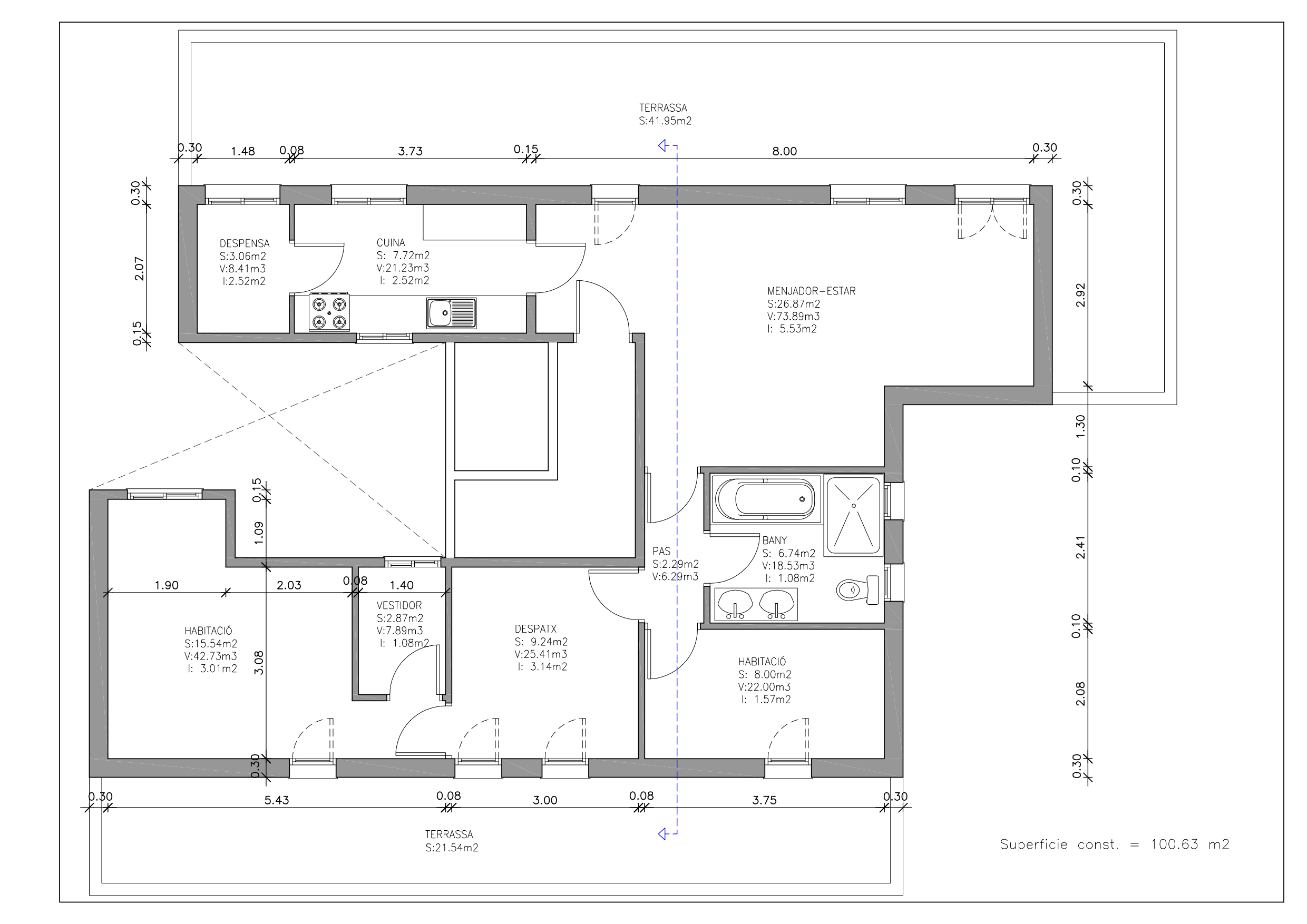 When we leave the day space and move on to the night space we find 2 rooms that overlook another terrace of 20 meters. The master bedroom is very large and has its private dressing room with 4 windows and different views, 3 windows are windows doors with access to the terrace. The second bedroom is individual and also has direct access to the same terrace overlooking the Tibidabo through the Sagrada Familia and ending with the port.