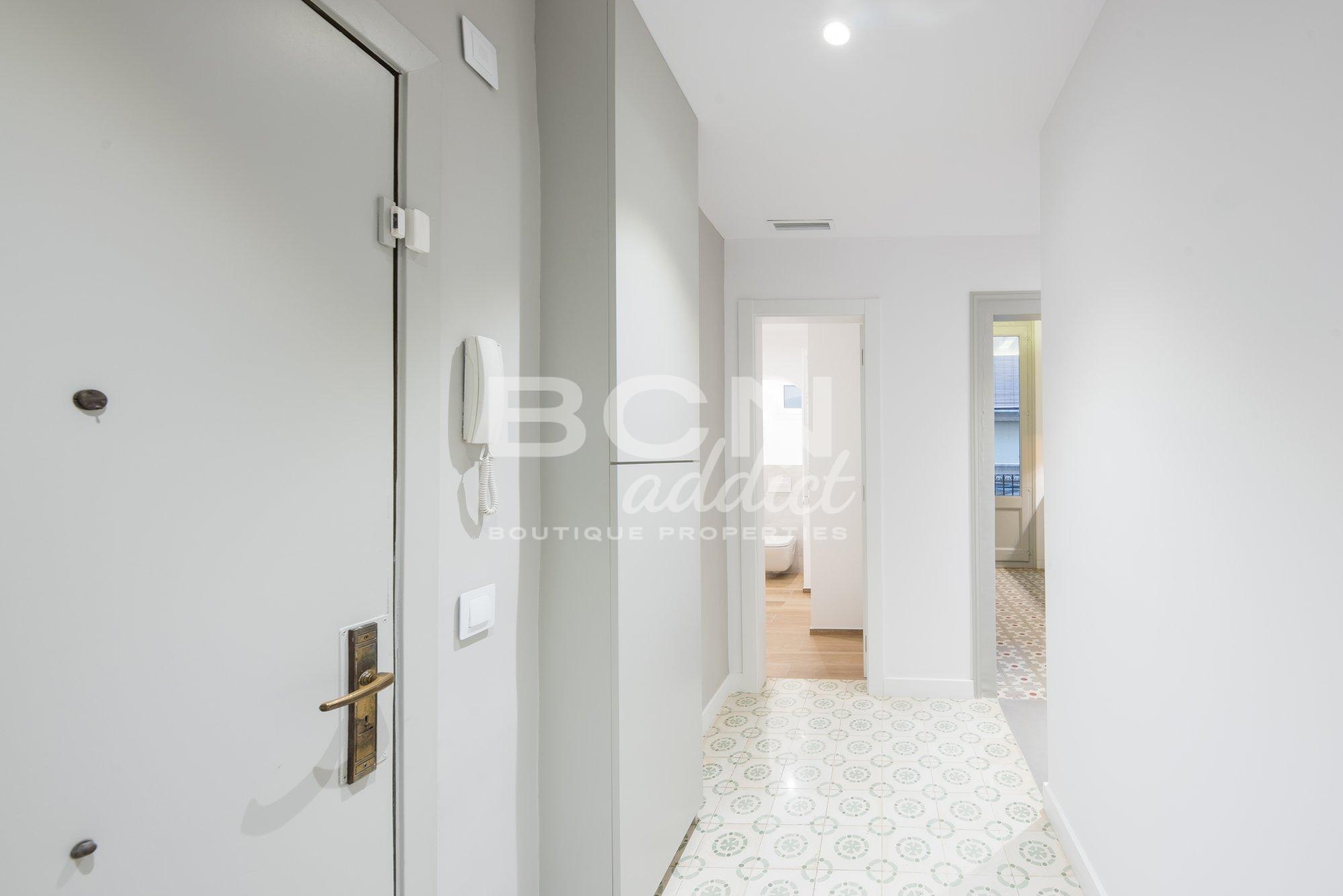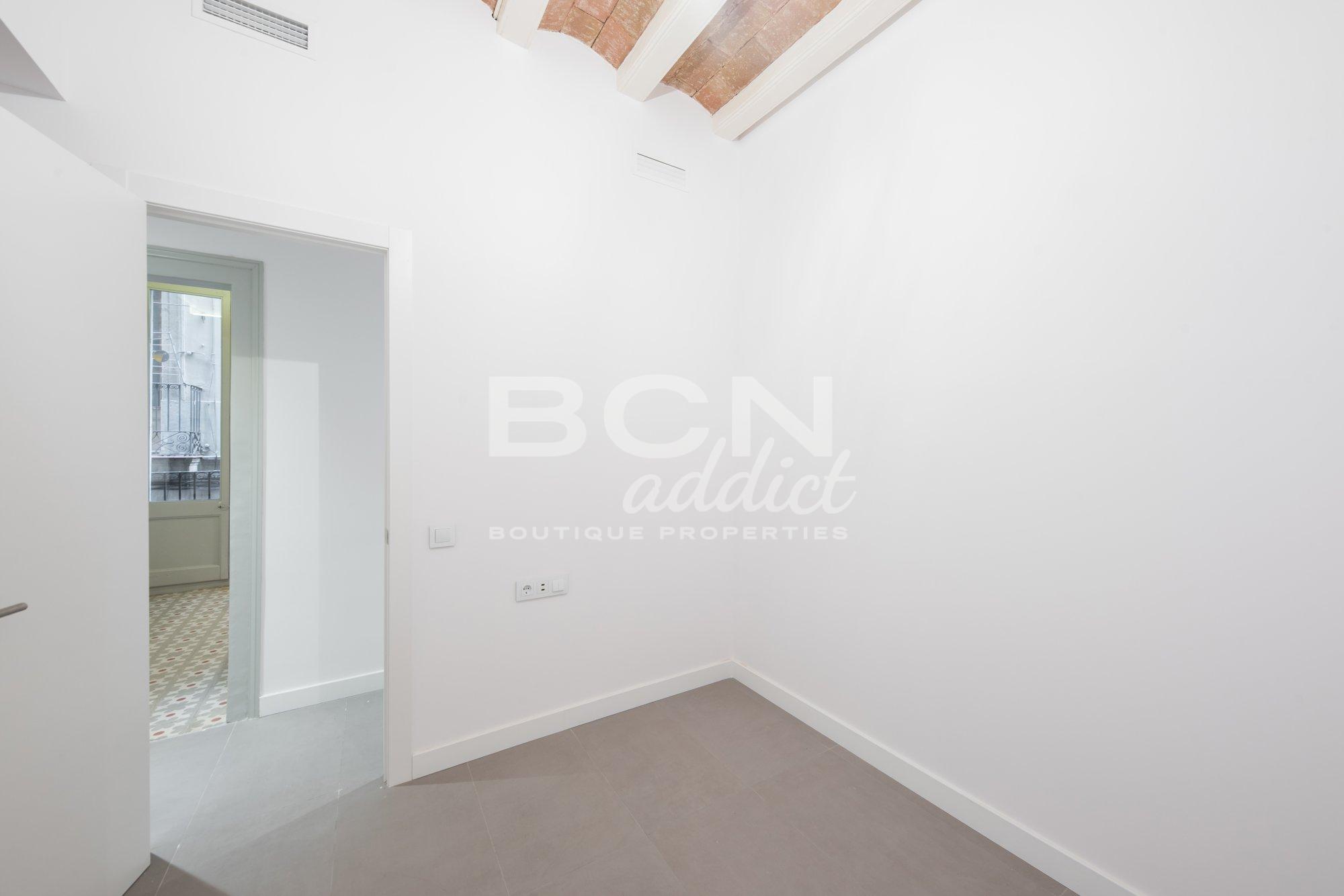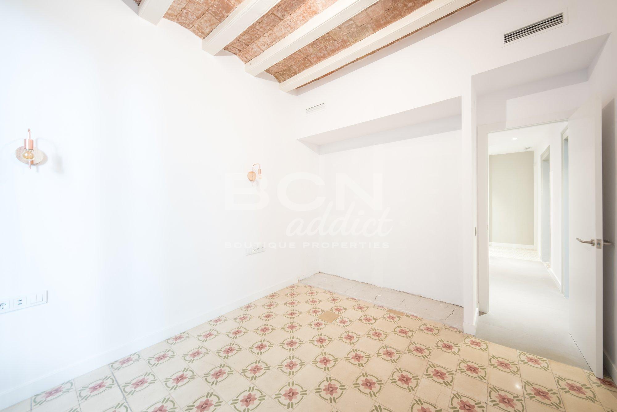 Search The apartment is located in the sought-after district of Borne, close to a variety of amenities, venues and famous sightseeing places. It is set on the first floor of a corner classic building of 1860, at the cross of two quiet pedestrian streets, next to Santa Catarina market. The building has passed the ITE: community spaces, façade and structure of the building are in good condition.