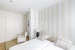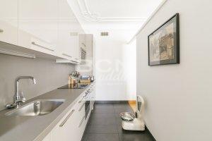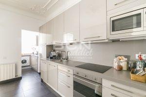 Este piso combina techos altos decorados con molduras y rosetones, diseño moderno, pavimento de parquet natural y carpintería interior de madera.