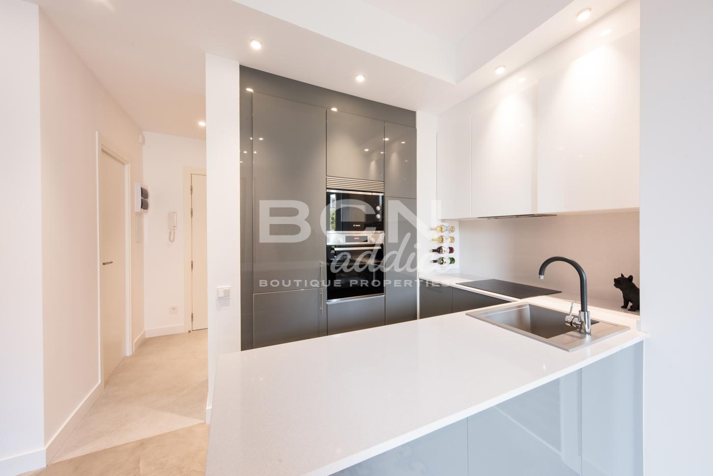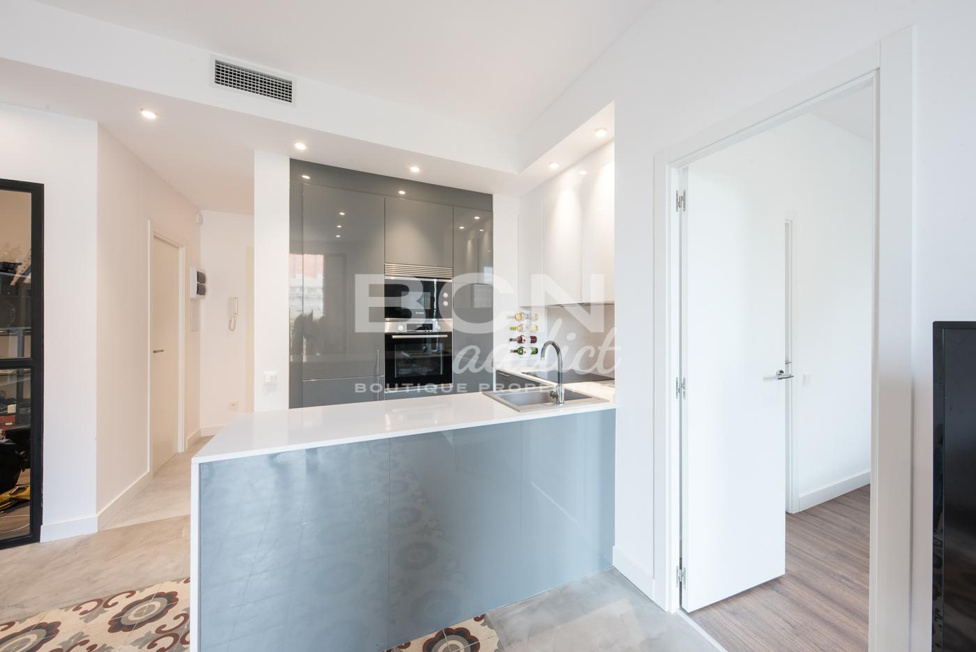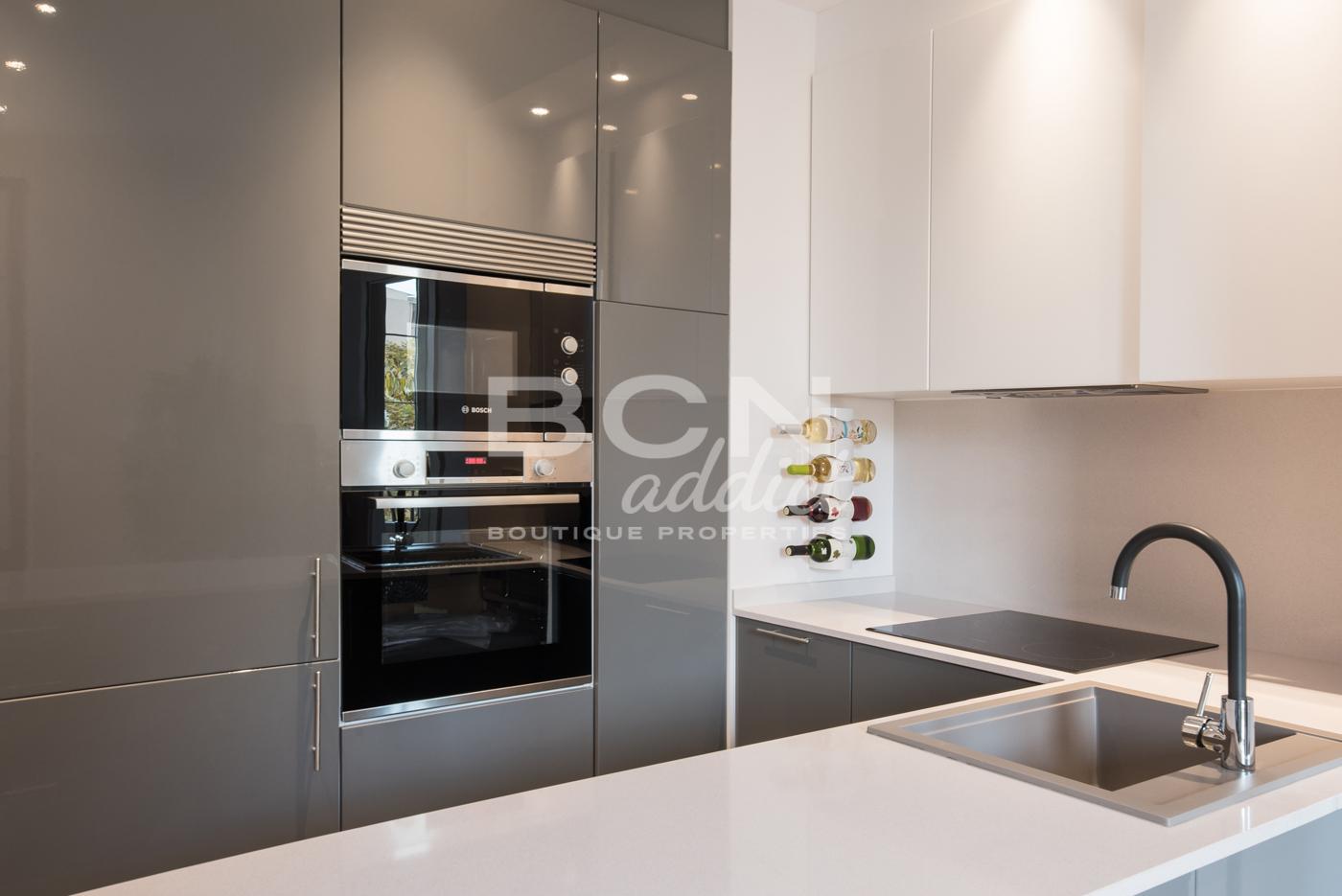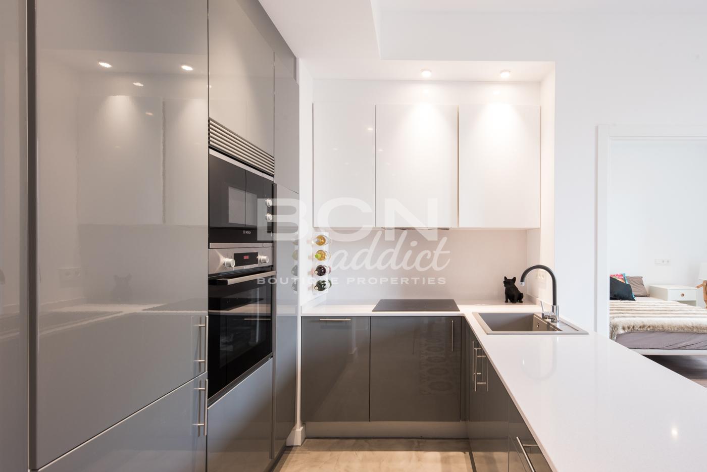 La distribución discurre a través de una altura de 3,5 metros con una cocina abierta totalmente equipada, electrodomésticos integrados y paneleados, mobiliario a medida y muy bien pensado para un uso práctico y funcional.