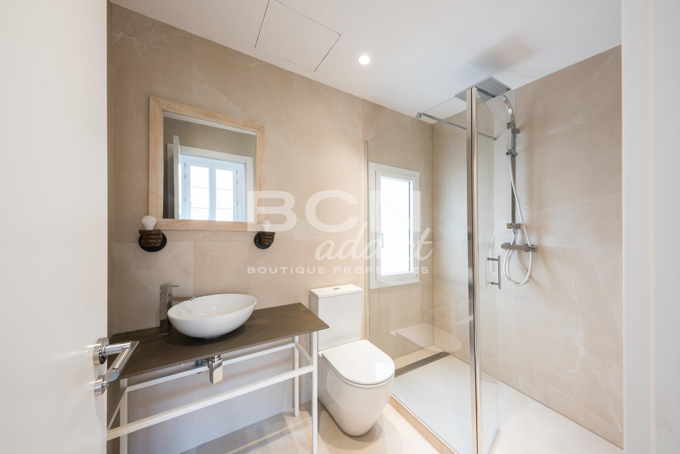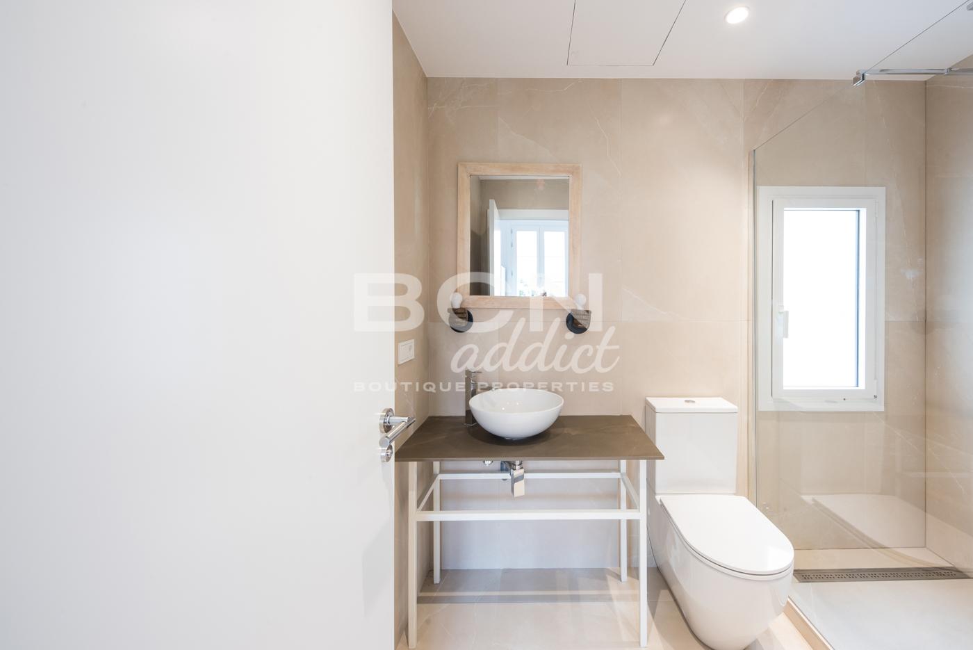 El distribuidor nos acomoda tres habitaciones con mobiliario empotrado, dos baños completos con suelos de mármol italiano, lavamanos de silestone, platos de ducha cuidados hasta el último detalle y mobiliario hecho a medida.