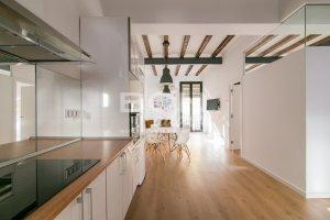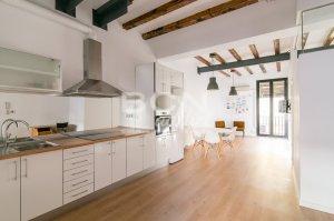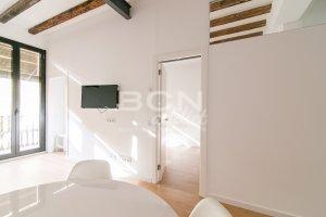 The apartment is located on the Salva Street in the Barrio of Poble Sec a few meters from Parallel Avenue, perfectly connected to the rest of the city by subway and bus. It offers a dressing room, living room with open and equipped kitchen, bathroom with shower and laundry room in, 55 square meters. It is equipped with heating and air conditioning for your comfort in addition to having double glazed windows.