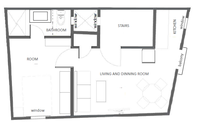 The building has no horizontal division yet and the entire premise is leased as follows : The first floor is part of the leasing with the ground floor commercial premise. The remaining 4 floors consist of residential units of 36m2 which are all rented with a term contract stating a finishing date for each rental agreement. The roof top includes a studio with communal terrace with is not leased for the time being.