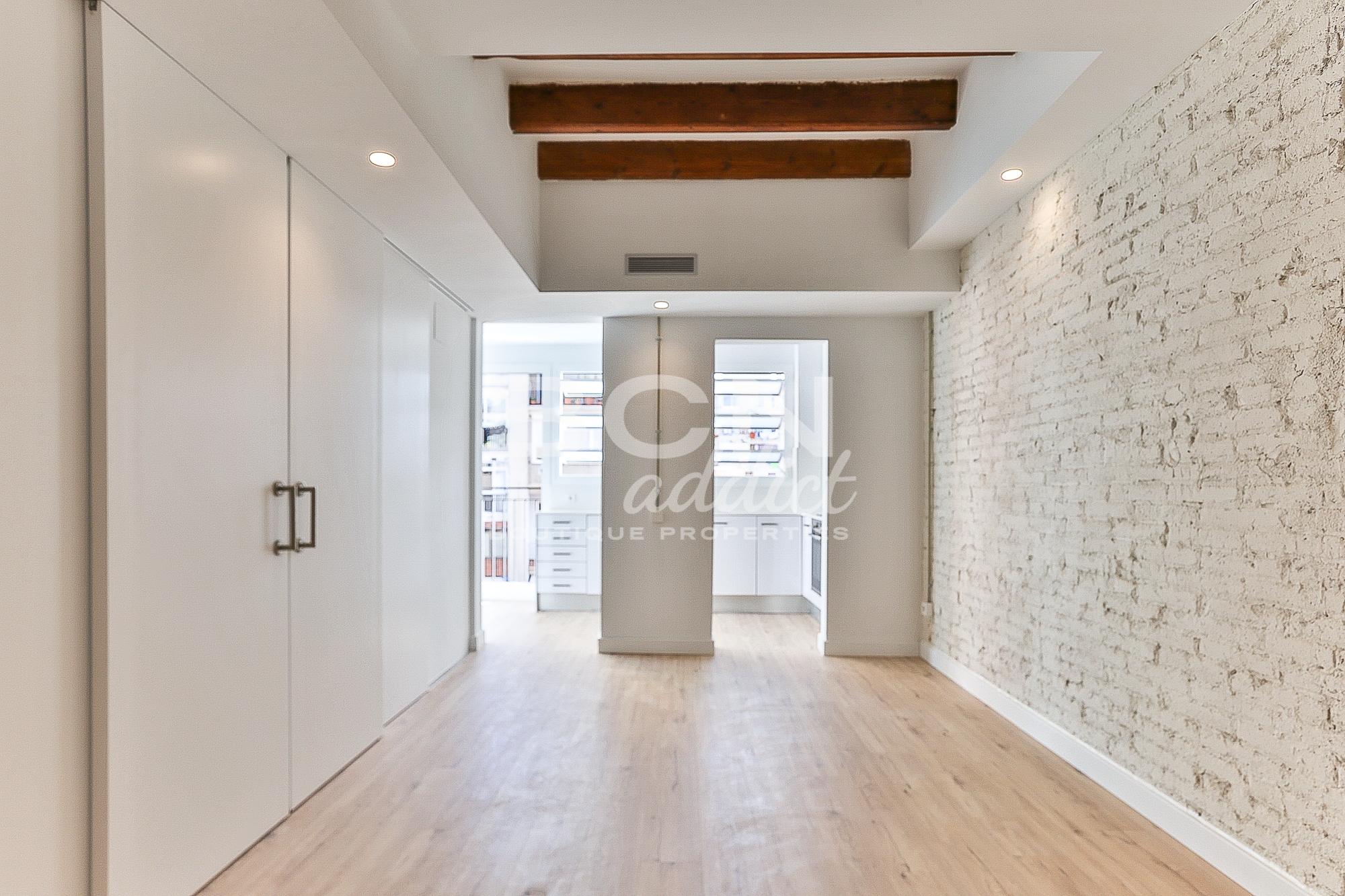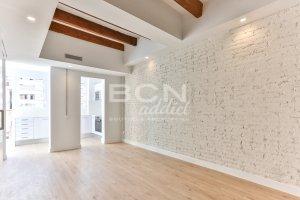 The apartments are distributed into a generous living room with integrated kitchen, 1 or 2 bedrooms, 1 bathroom, laundry area and terrace or balconies. Its east / west orientation gives them a lot of natural light. In the reform the original elements have been recovered, converting the apartments into modern homes with characteristics of their time.