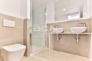 The finishes include EGGER laminate floating parquet floors in the living areas, porcelain stoneware tiles in the bathrooms, air conditioning with MITSUBISHI ECODAN hybrid system, double glazing, and the appliances in the kitchen include induction hob, multifunction oven, microwave, dishwasher and extractor hood of the BOSCH brand.
