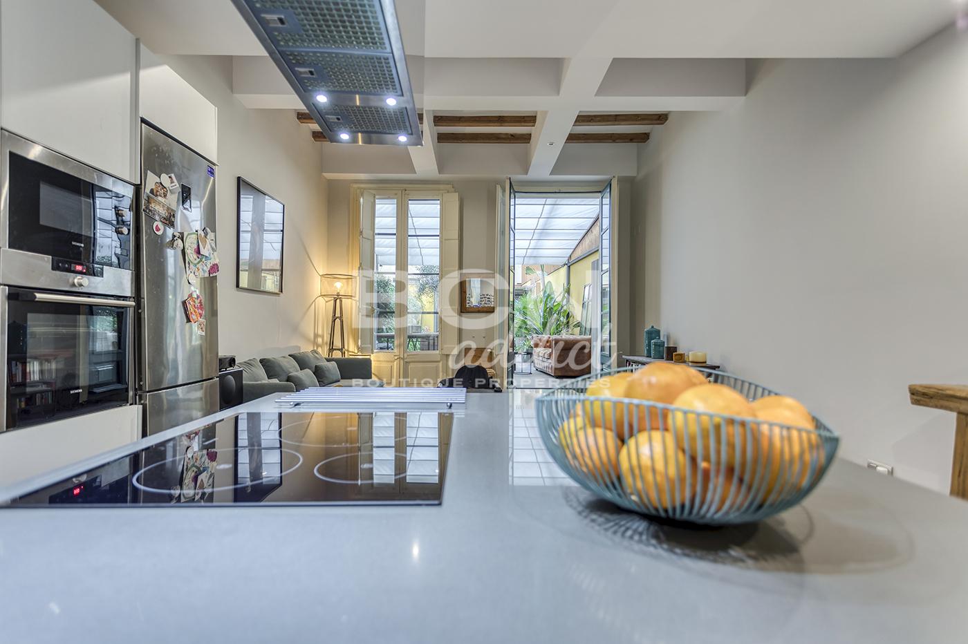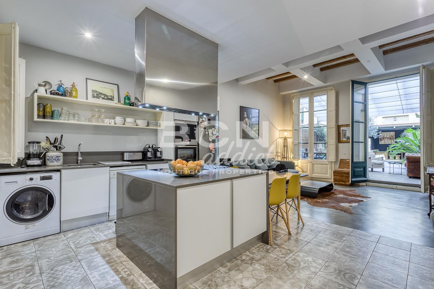 The apartment, in a building dating back to 1900, has been fully renovated with materials of the highest quality. The property is composed of a large hallway leading to the spacious living-dining room with a stunning open kitchen complete with an island and ample space for a dining table, there is also access to a porch. From the living area we access terrace, measuring 70m² this is a real highlight of this property and includes a multi-use area.