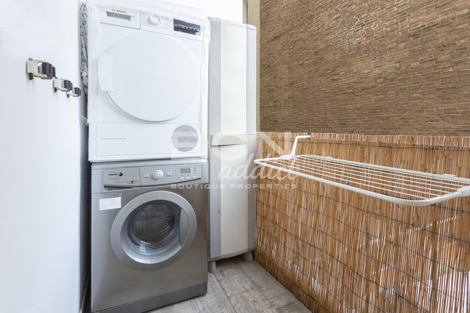 The building consists of a ground floor for commercial use, a mezzanine floor, a main floor and three flat floors. It is characteristic building from the Eixample area. On the one side, it is open to Muntaner Street with southwest orientation and on the other we find a generous and quiet courtyard. As usual in this type of flats, the wet areas open to the interior light patios, however, on this floor there is a laundry area on the rear facade