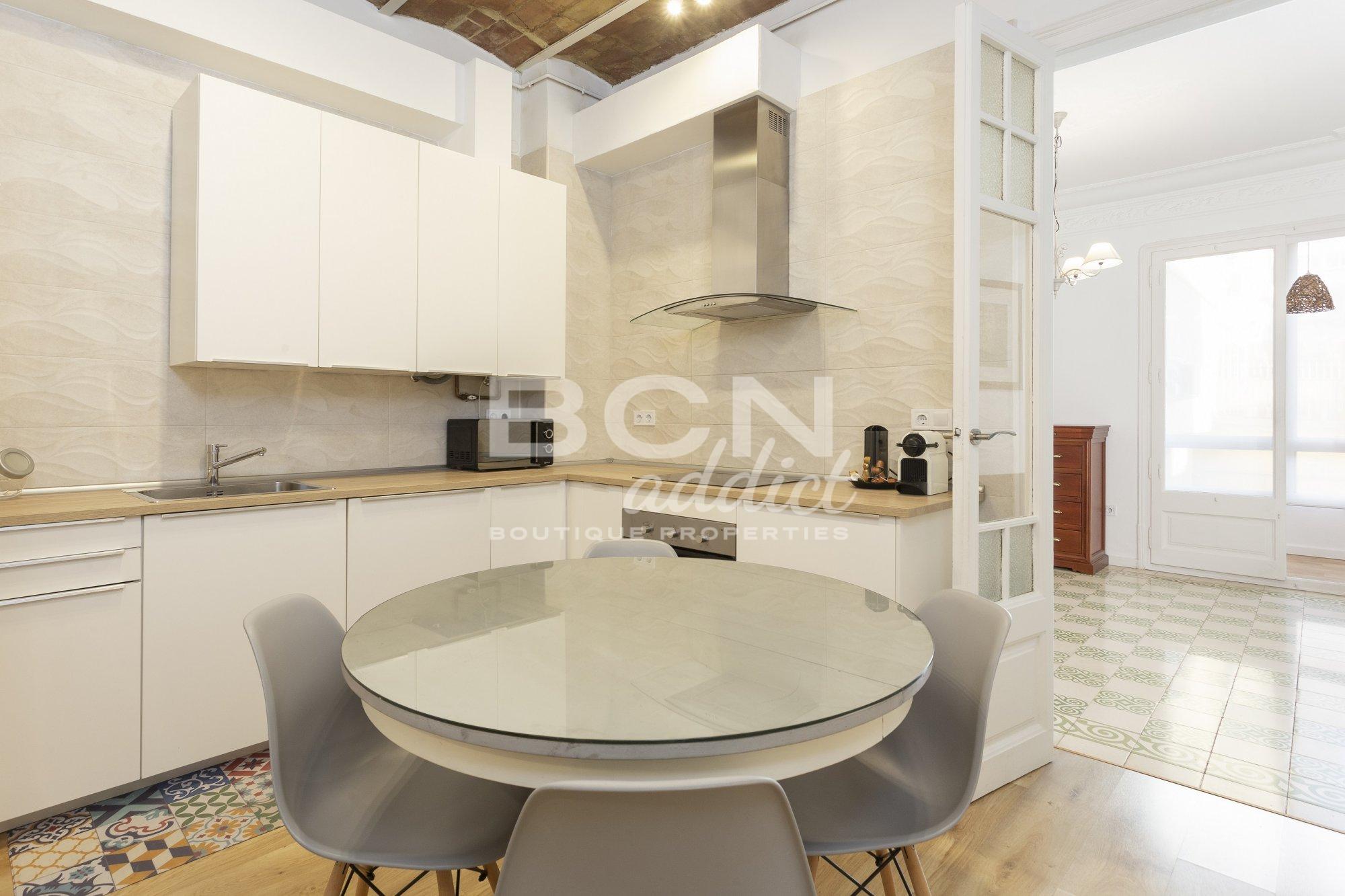 This apartment has been renovated a few years ago and has original modernist elements such as coffered ceilings, "Volta Catalana" ceilings, hydraulic floors and original carpentry.