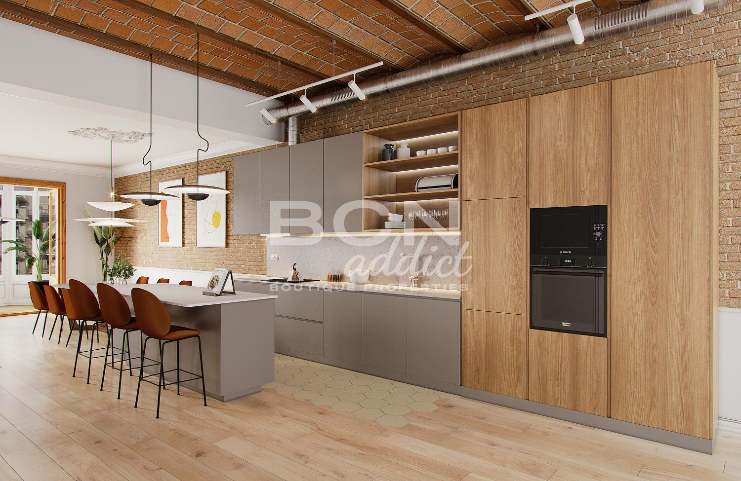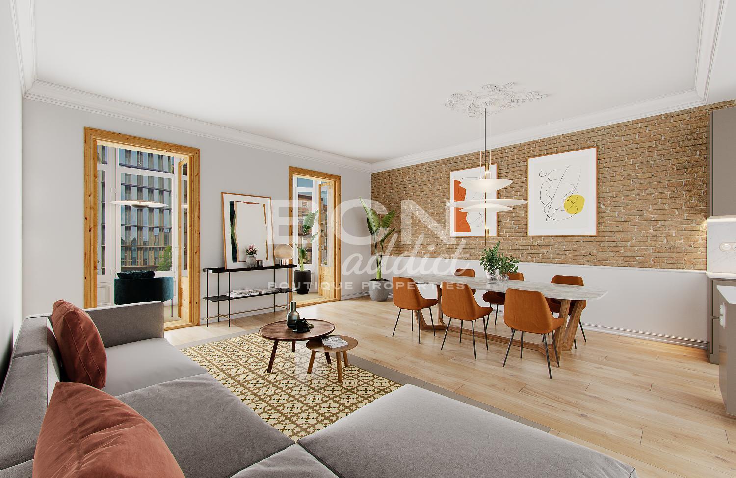 Building elements representative of the Eixample of Barcelona such as wooden doors, hydraulic floors and Volta Catalana on the ceilings have just provided the apartment with perfect elegance