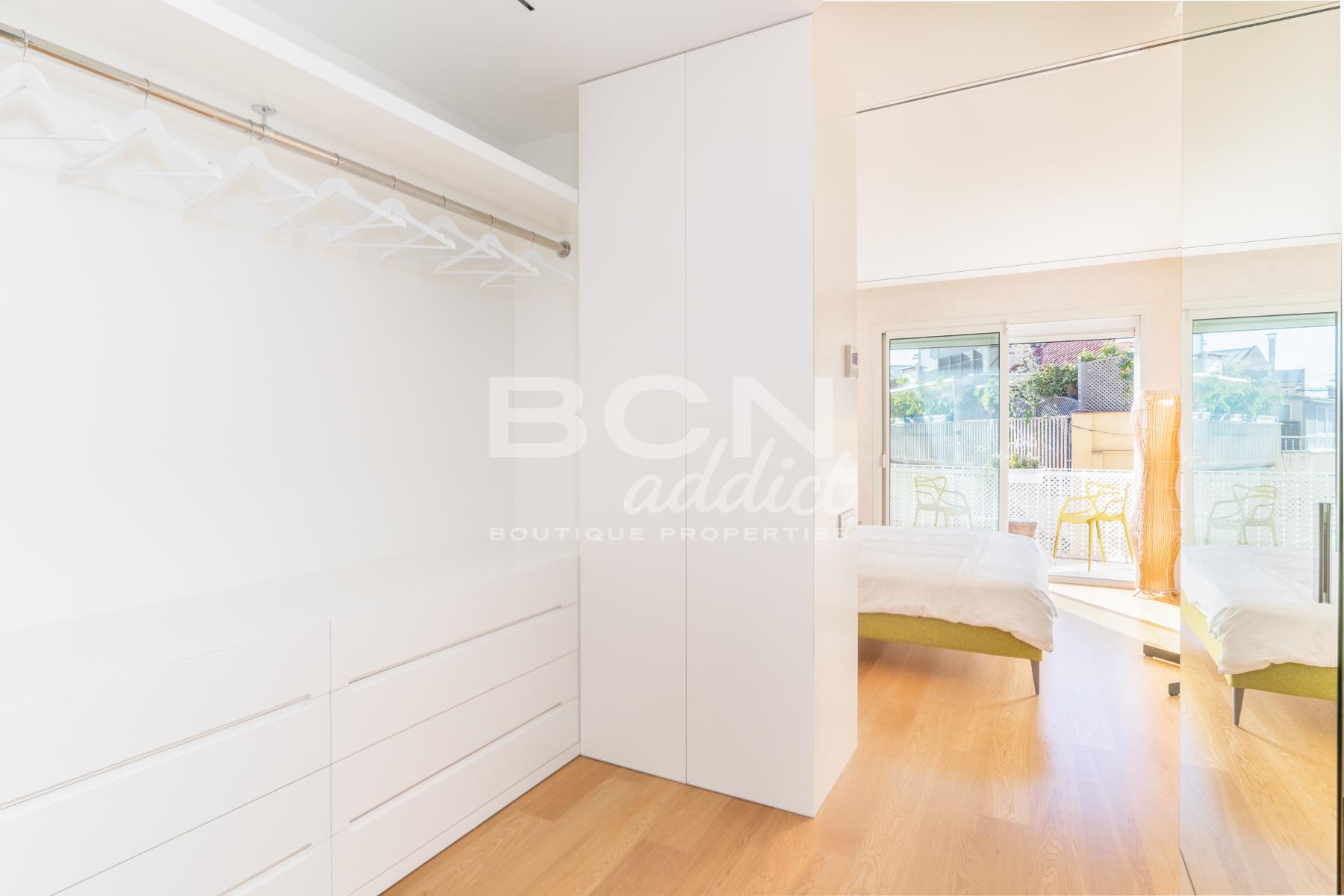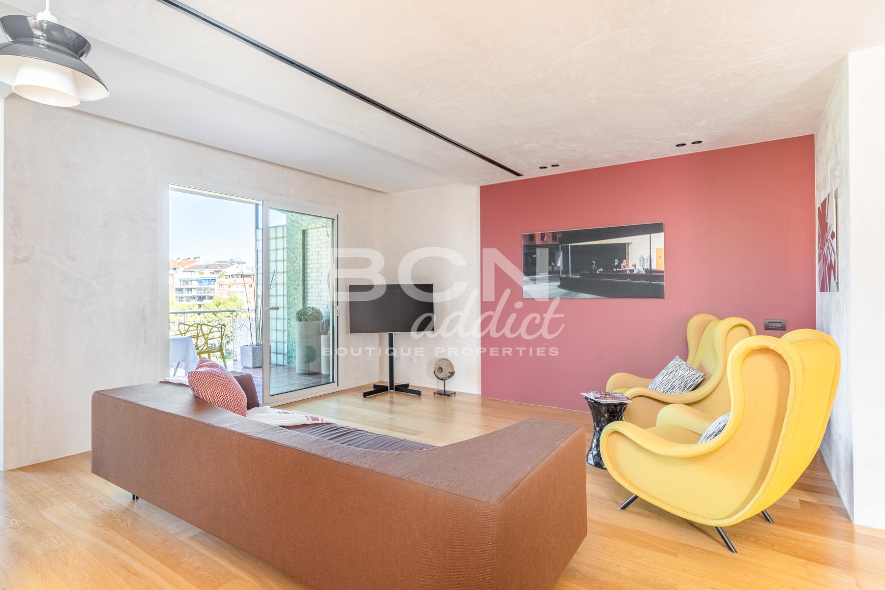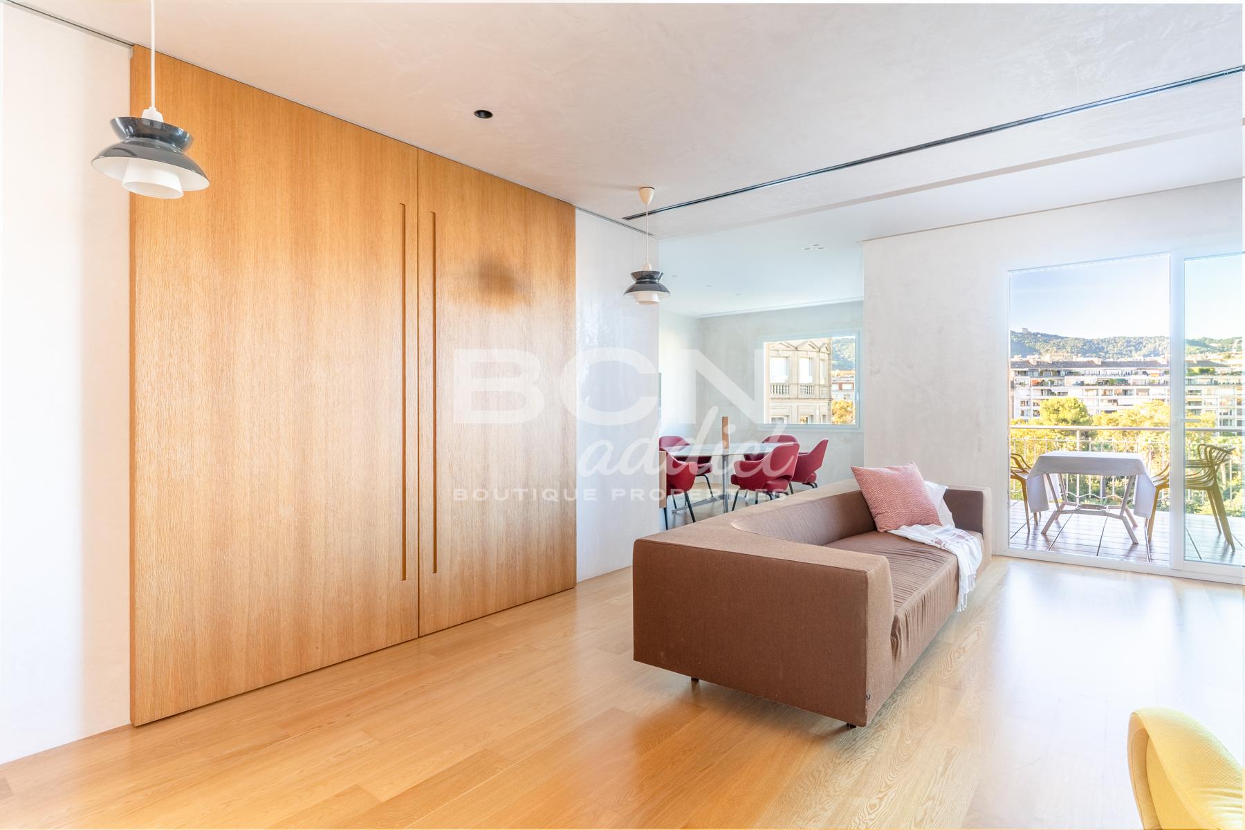 Completely renovated four years ago with high quality materials, the penthouse has an interior surface of 150 m2 with two terraces, one with views of Turó Park and Tibidabo facing west and the other facing east giving morning light to the rooms.