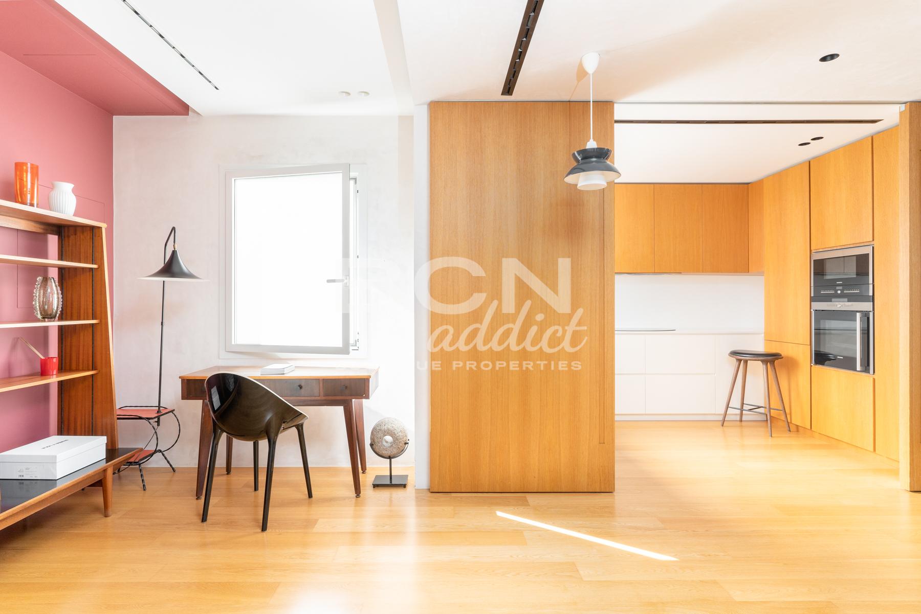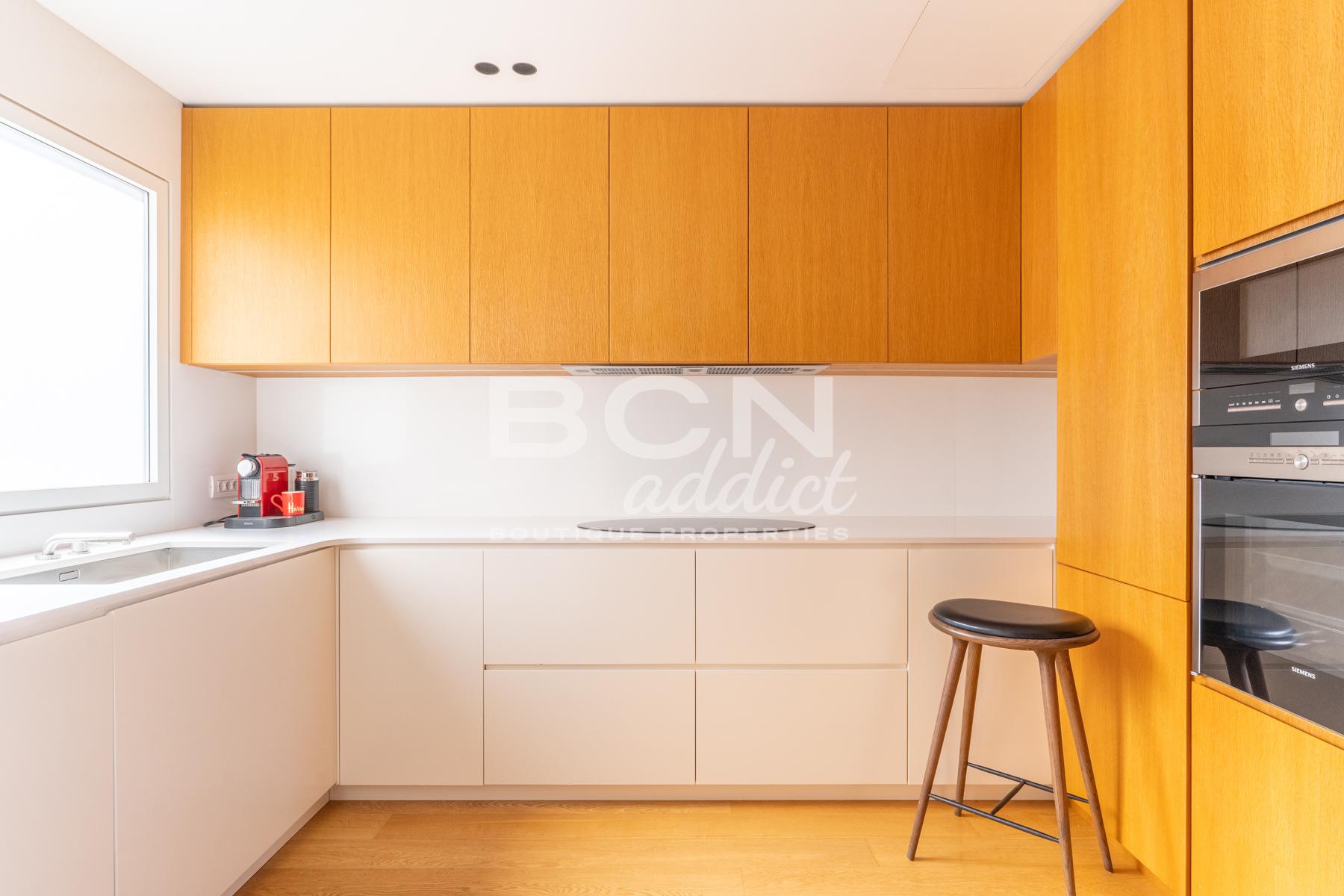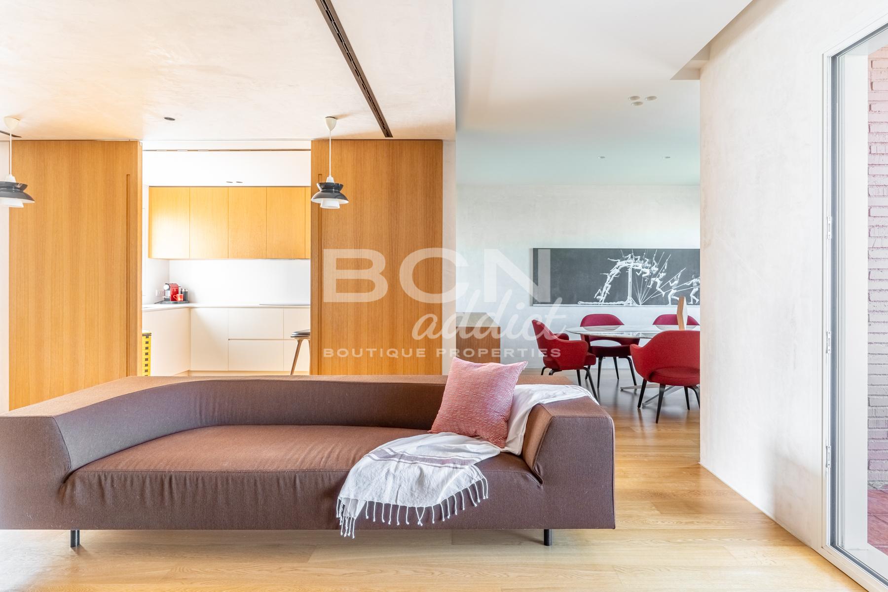 Completely renovated four years ago with high quality materials, the penthouse has an interior surface of 150 m2 with two terraces, one with views of Turó Park and Tibidabo facing west and the other facing east giving morning light to the rooms.