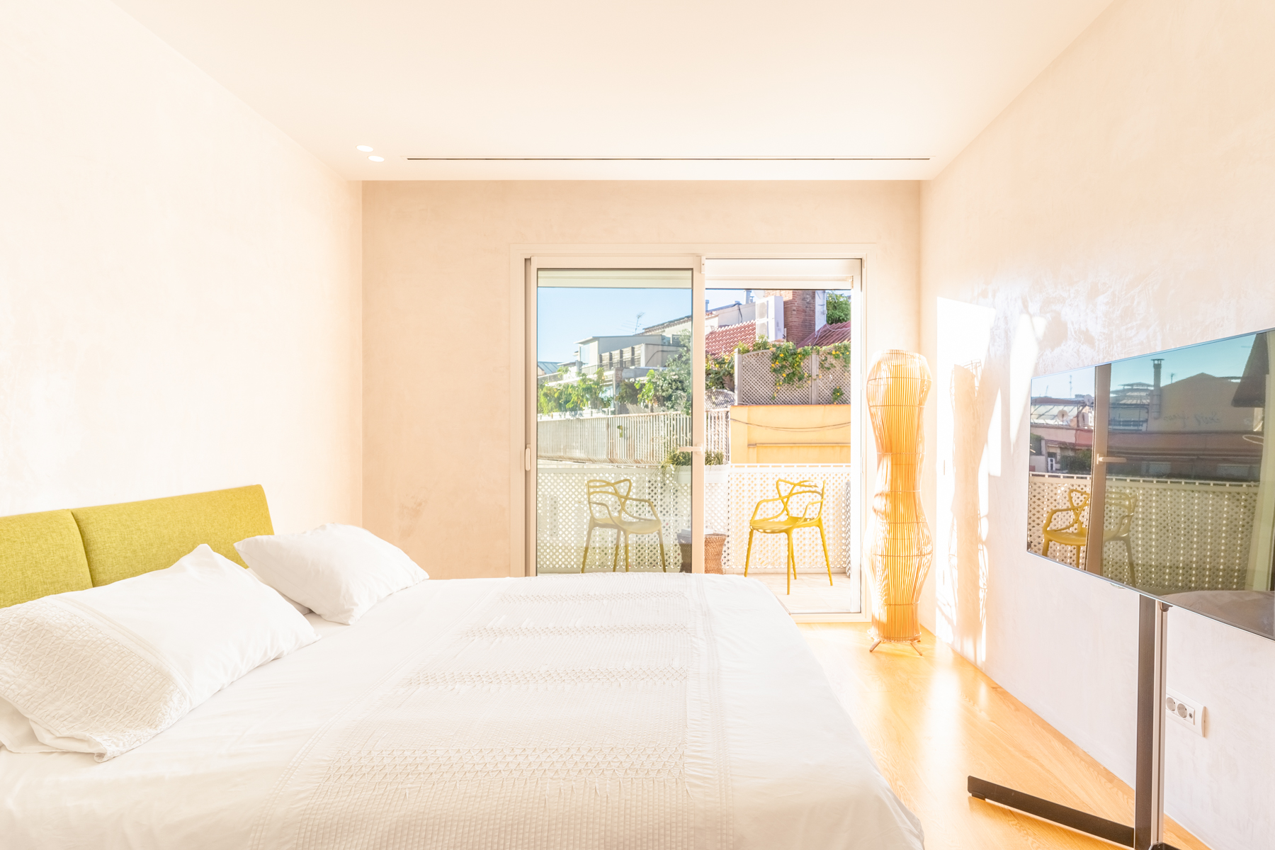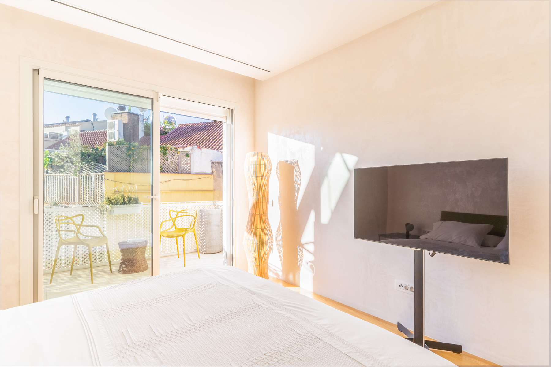 The night area has three rooms, two suites with dressing room and bathroom. One of them has access to a second terrace of 7 meters and a third bedroom facing the interior patio with a separate bathroom shower.