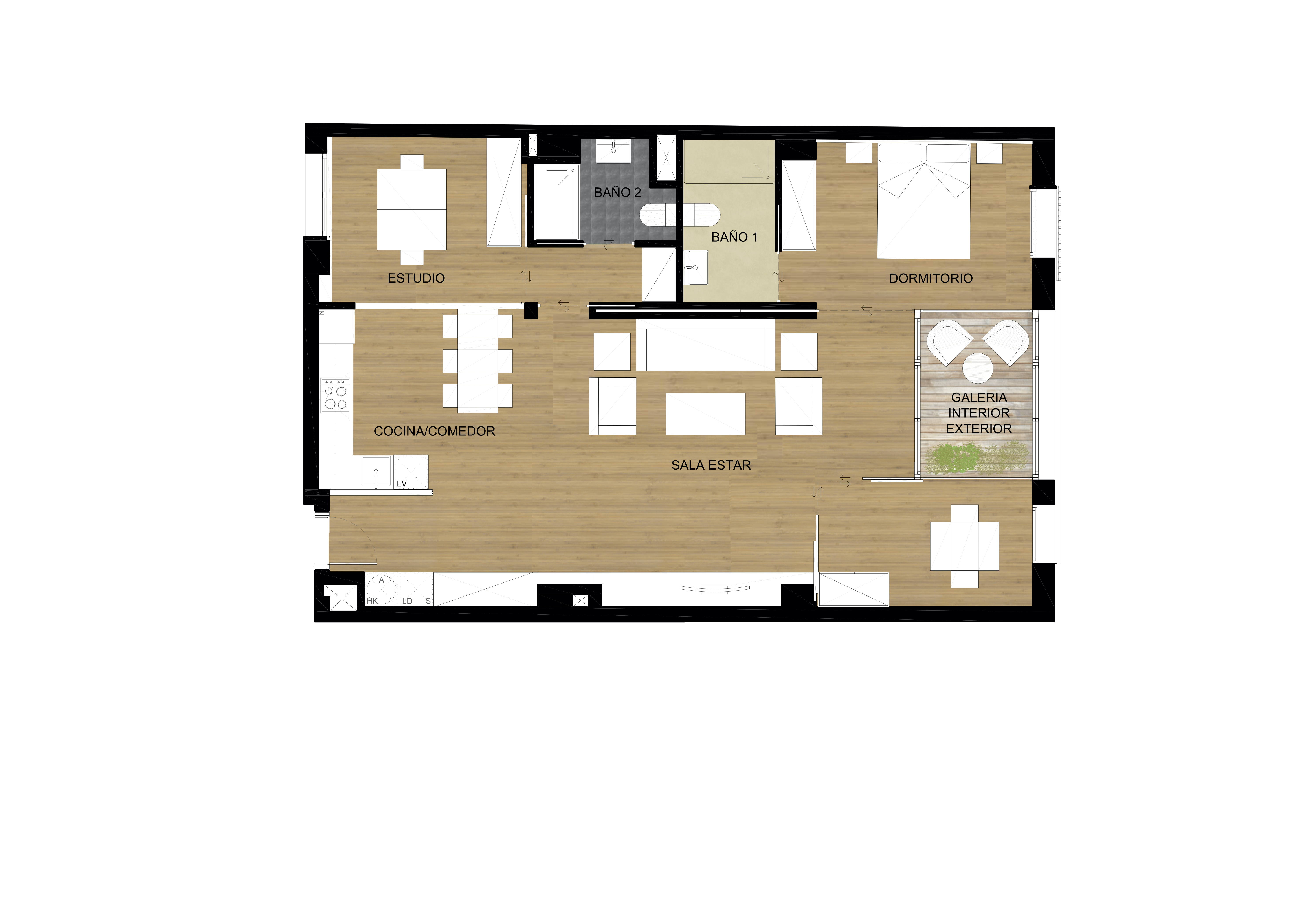 It is made up of spacious and bright apartments of 85m2 and 110m2 with exterior balcony-terrace or interior gallery, in total 10 flats with Cedulas. The flats have two bedrooms with two bathrooms and another space as a third room when needed.