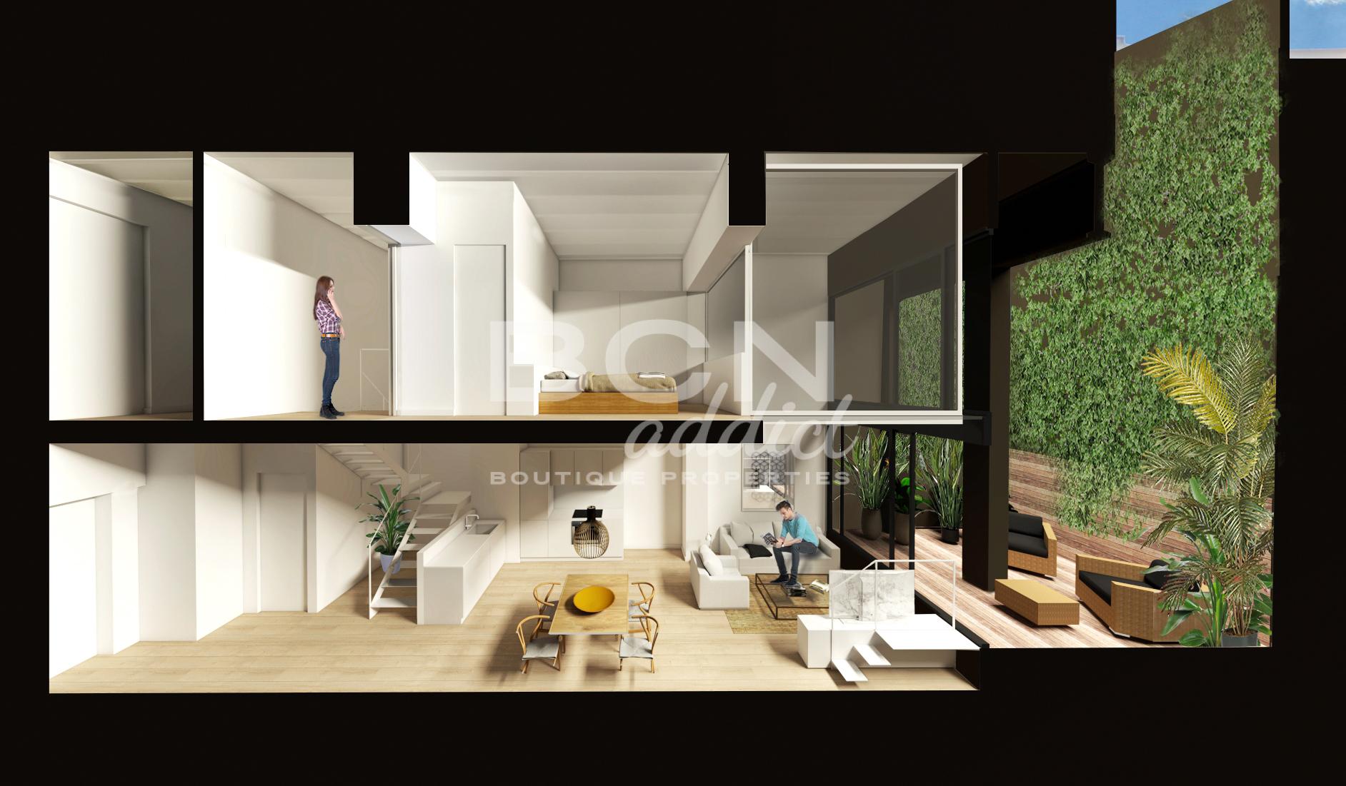 Search BCNaddict is happy to present this promotion resulting from the rehabilitation of an old industrial building. It is made up of spacious and bright apartments of 85m2 and 110m2 with an exterior balcony-terrace or interior gallery, a total of 10 flats with cédulas and two ground floor flats without a cédula.