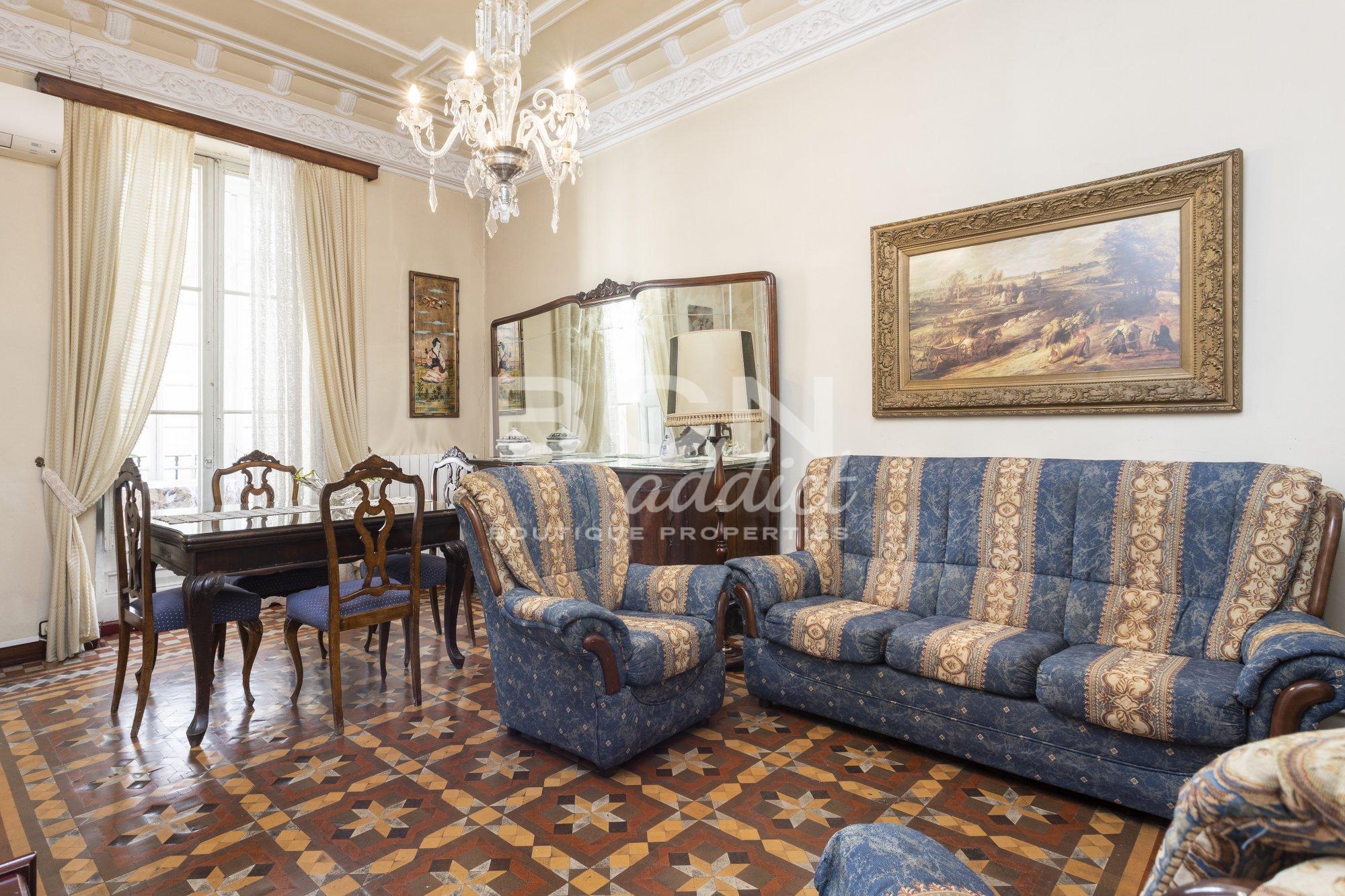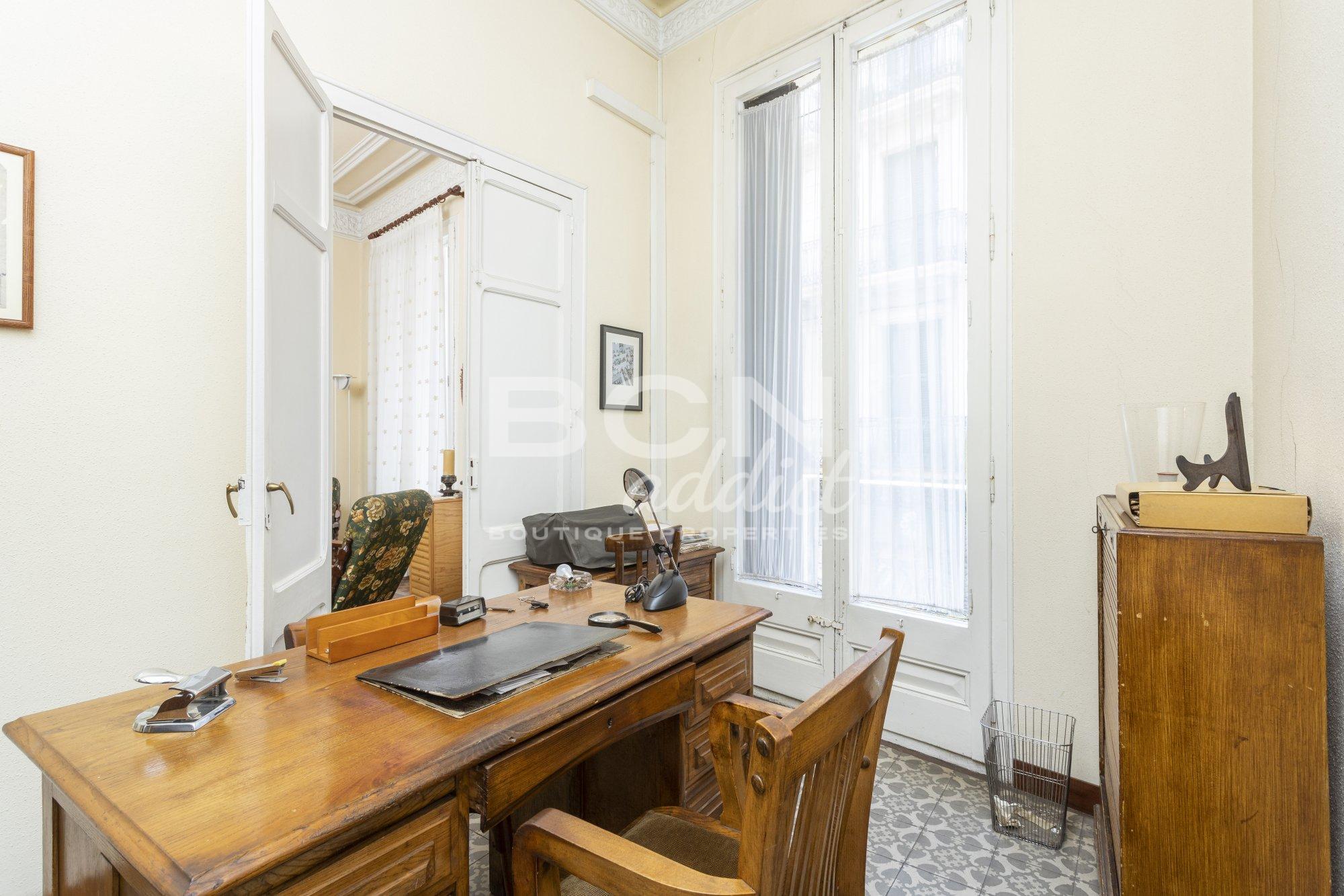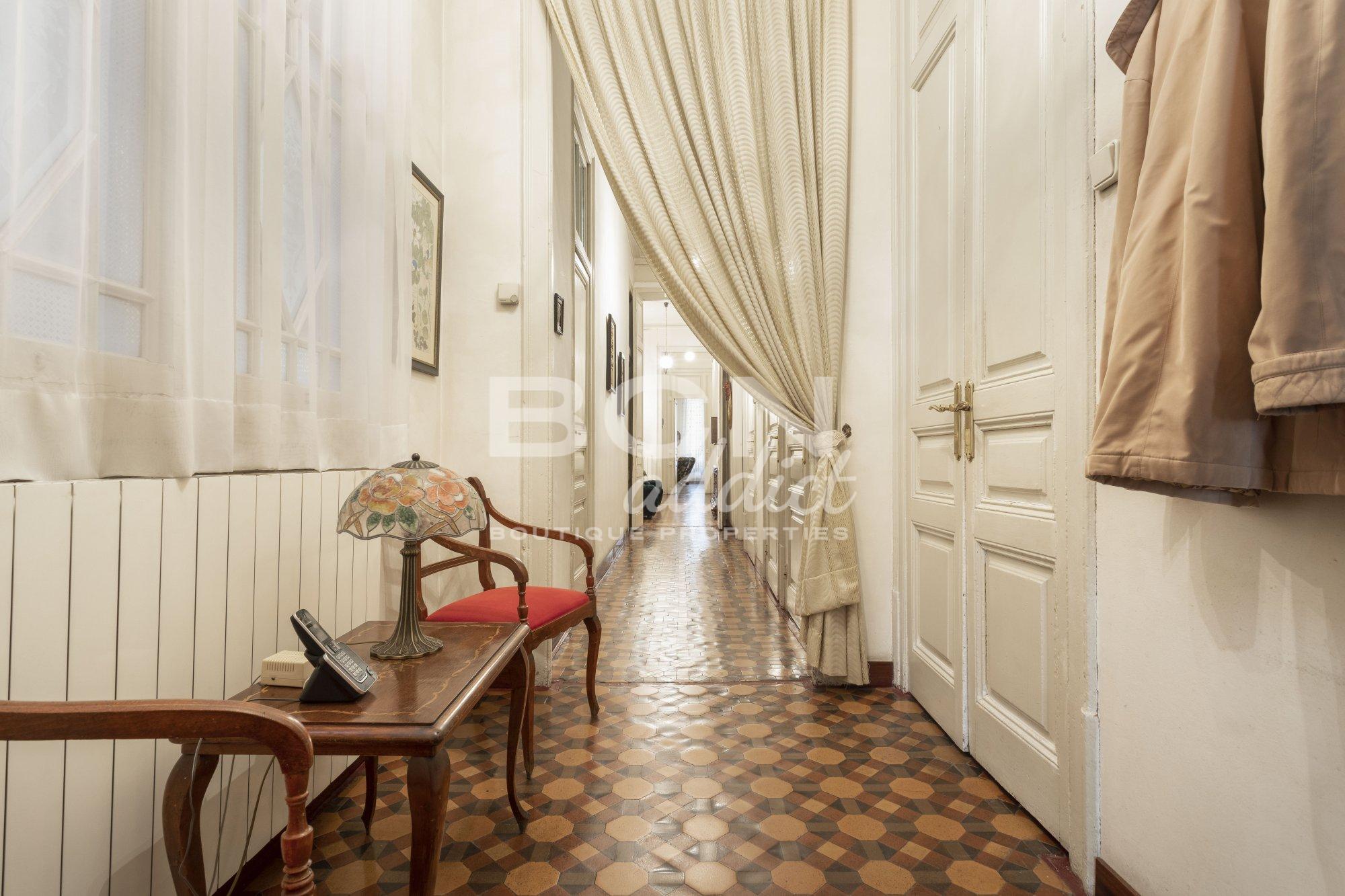 The house is located on the main floor of a building between party walls built in 1910. It has a rectangular geometry with a constructed area of 213m². The property is within a protected area of Cultural Assets of Local Interest, so a good conservation of the area and the surrounding buildings is guaranteed.