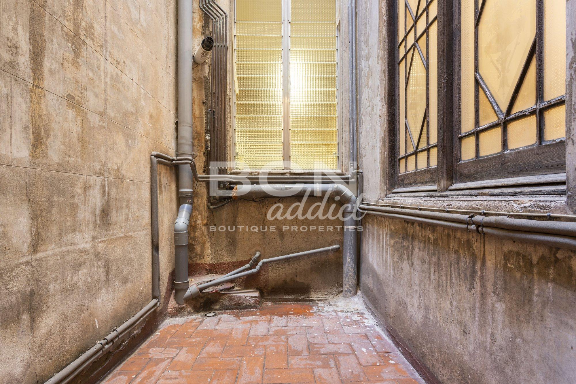 The apartment has double-orientation dwelling, with light at both sides, with views to Calle Jonqueres on one side, and a quiet patio with a terrace on the other side.