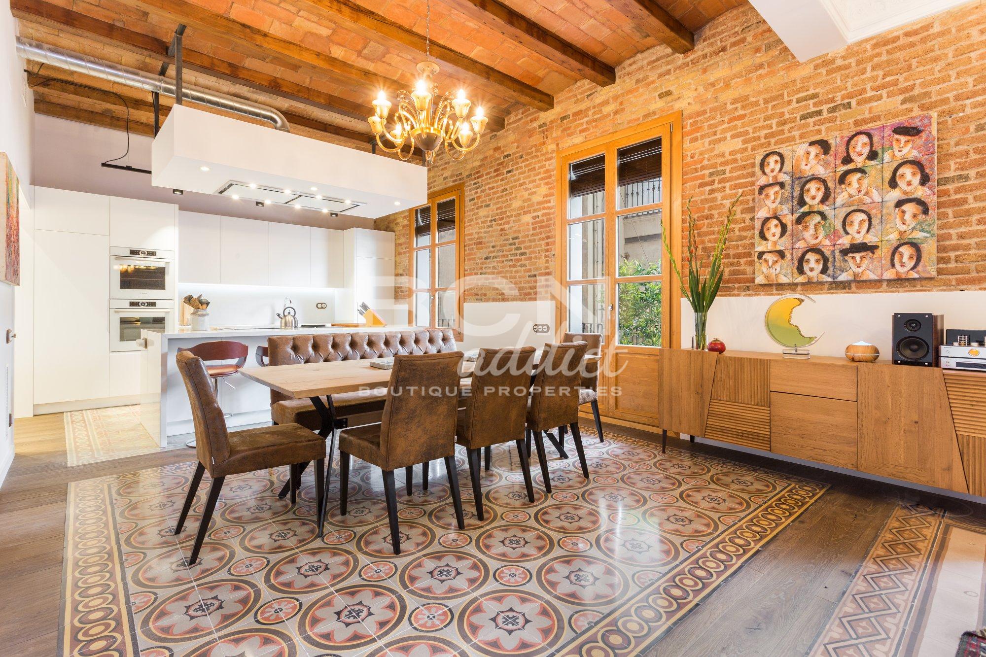 The representative construction elements of the Eixample of Barcelona such as wooden doors, hydraulic pavements and decorative ceilings will end up giving the apartment a perfect elegance.