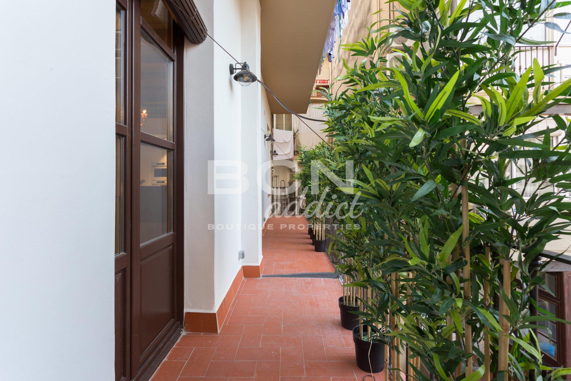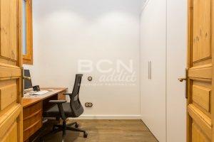 It is an exterior floor located on the third floor of a building with an elevator. It faces north to Roger de Llúria street with morning sun and on the other side to a quiet block patio with afternoon sun where we can enjoy a quiet terrace.