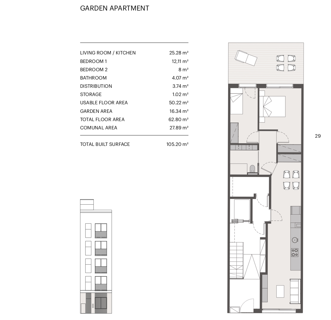 Offering a unique new development (Obra Nueva), a boutique five-stars building, consisting of a privately accessed apartment in each floor, a garden apartment and a rooftop terrace with a pool. 17