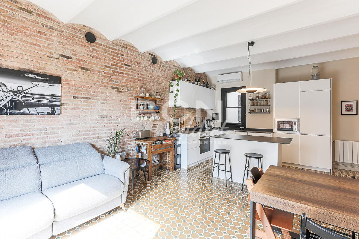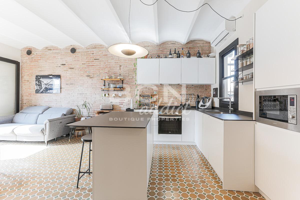 Search In the Sants district, this 77 m2 apartment with a 55m2 private terrace is perfect for those who dream of the perfect private terrace.
