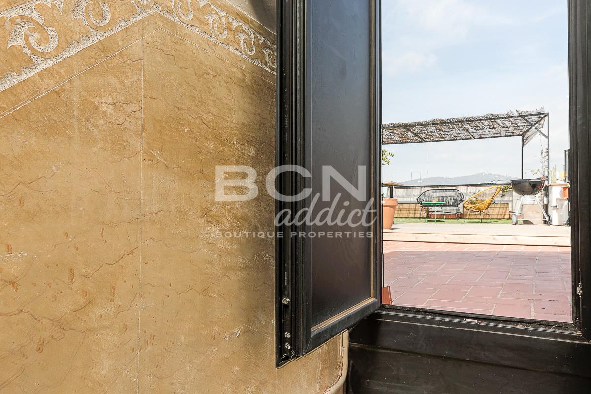 Just above the apartment, walking up by a beautiful staircase, you reach the highlight of this apartment: a private terrace of 55 m2 with panoramic views of Barcelona.