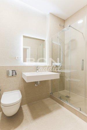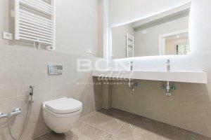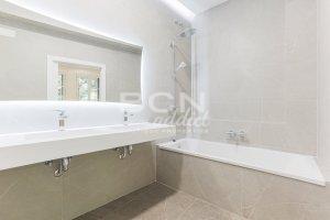 The kitchen opens to a large space bathed in light divided between the dining room and the living area. All materials and finishes are in unison with the standard of this apartment. Very high quality, starting with the Hungarian herringbone parquet floors. The kitchen is fully integrated with Santos brand furniture (guaranteed for five years) and Bosch and Siemens appliances.