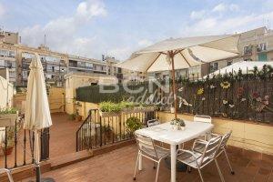 The building consists of a total of ground floor and 5 floors. At street level we find premises for commercial use, while the rest of the floors are residential. The building is being developed giving rise mainly to two homes per floor. Each of these flats has two distinct areas at the ends, on one side Carrer Bruc with midday and afternoon sun and on the other a quiet island patio. It is in this rear part where we find the fantastic 70 m2 terrace. The intermediate areas are supported by interior patios, so they also have natural light and ventilation.