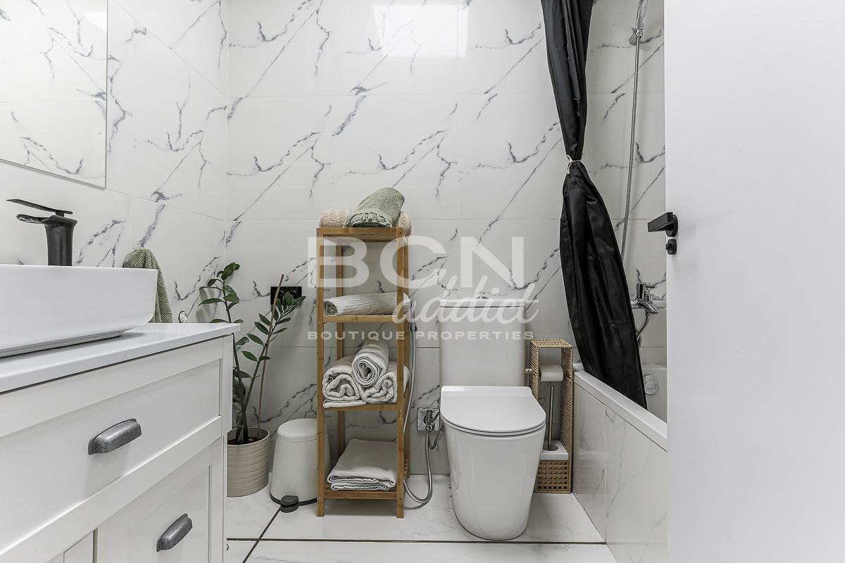 The property is in excellent state as it was revamped with expensive modern interior design in 2021. The flat features premium materials of designer brands. It also features quality interior finishes: The flat is equipped with alarm, built-in led down lights systems, air conditioning via heating pump, double glazing windows with aluminum frame, fitted kitchen and bathroom lacquered furniture, hot water and radiant radiators system, tiled and parquet flooring combination.