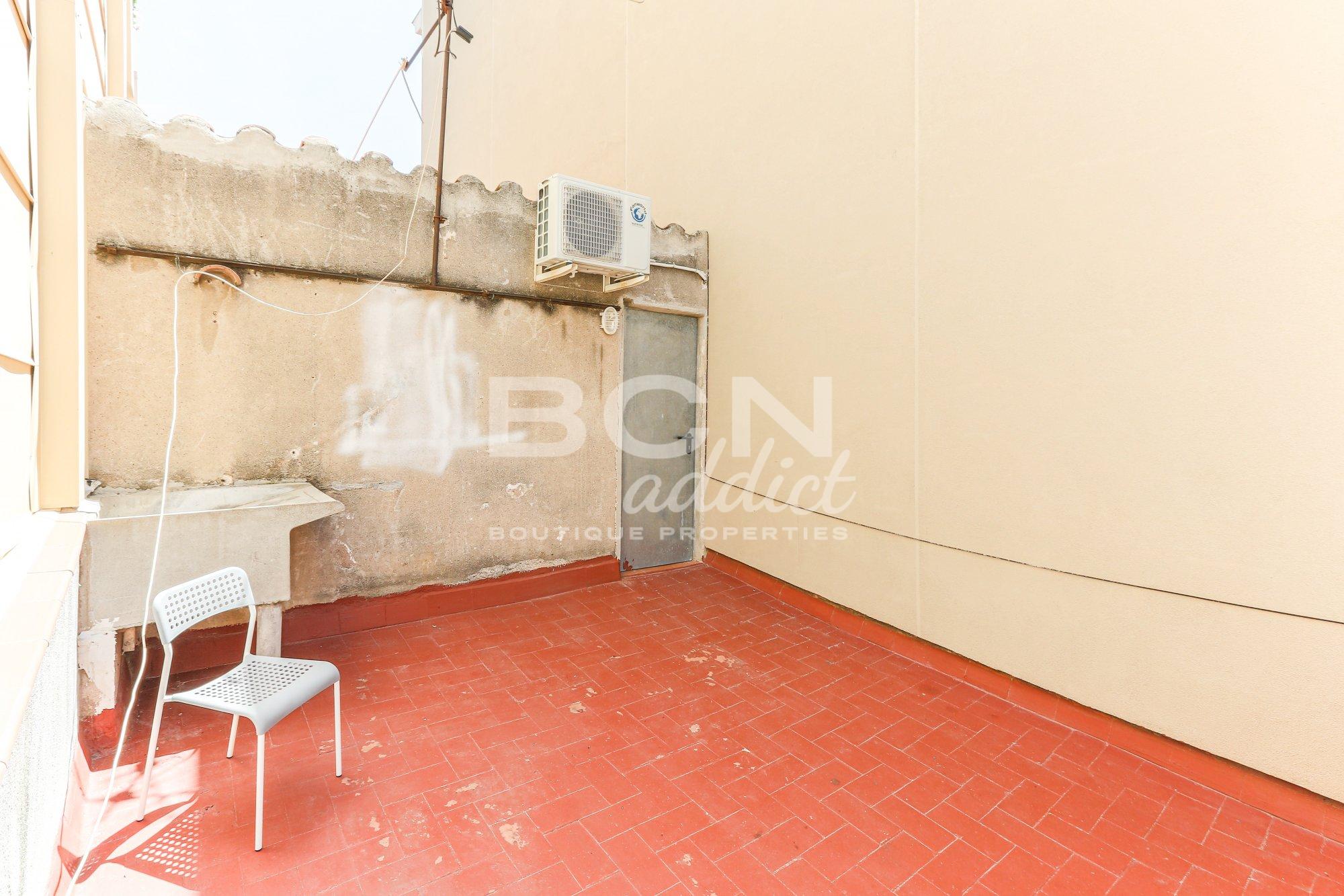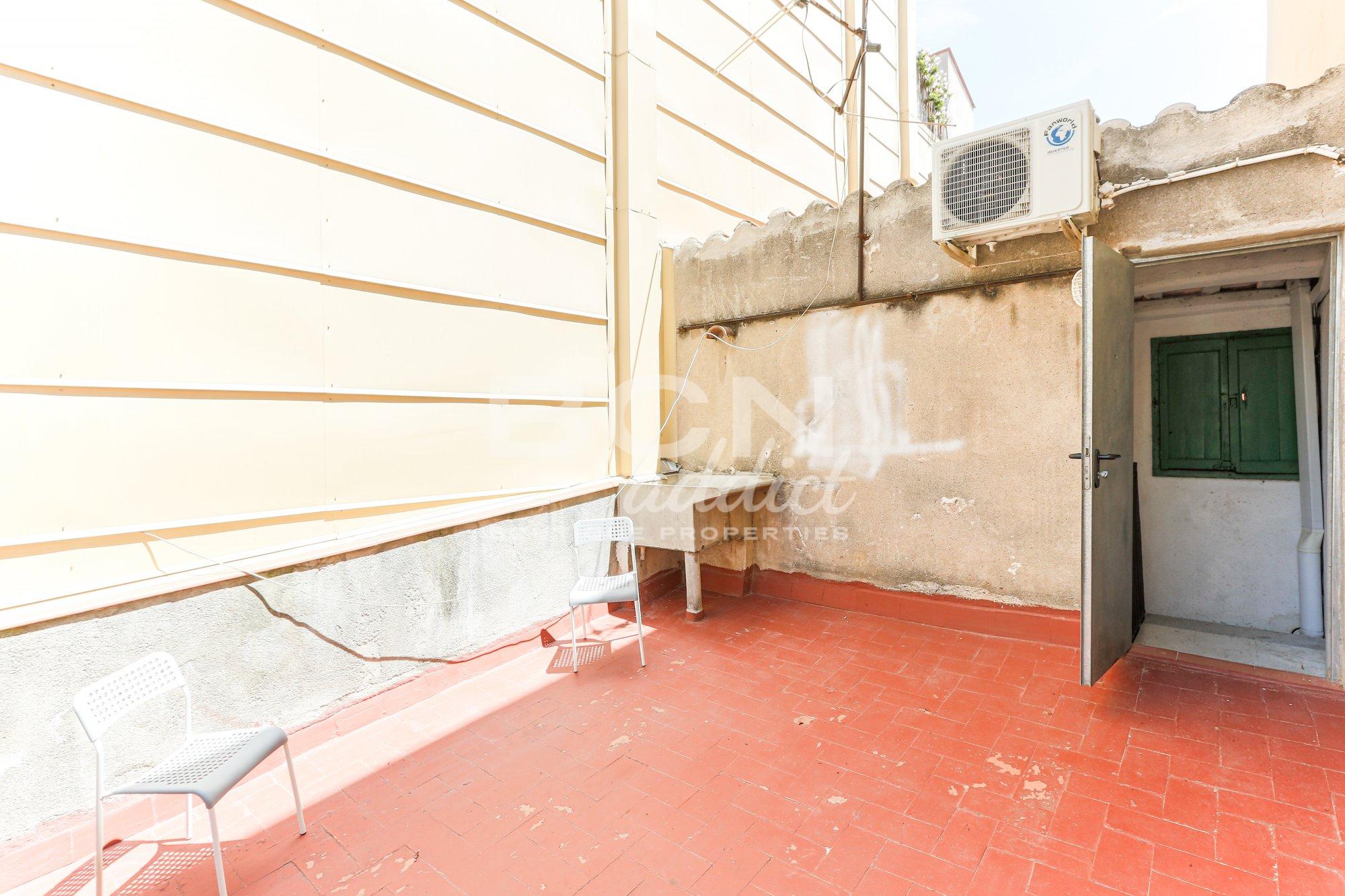 This 3-story house plus terrace, originally built in 1900 and fully rehabilitated, consists of three units: a ground floor currently used as a commercial space, a first-floor residence that features a full bathroom, a spacious living-dining room, a fully equipped open kitchen, a large bedroom, and a pleasant balcony with exterior views.