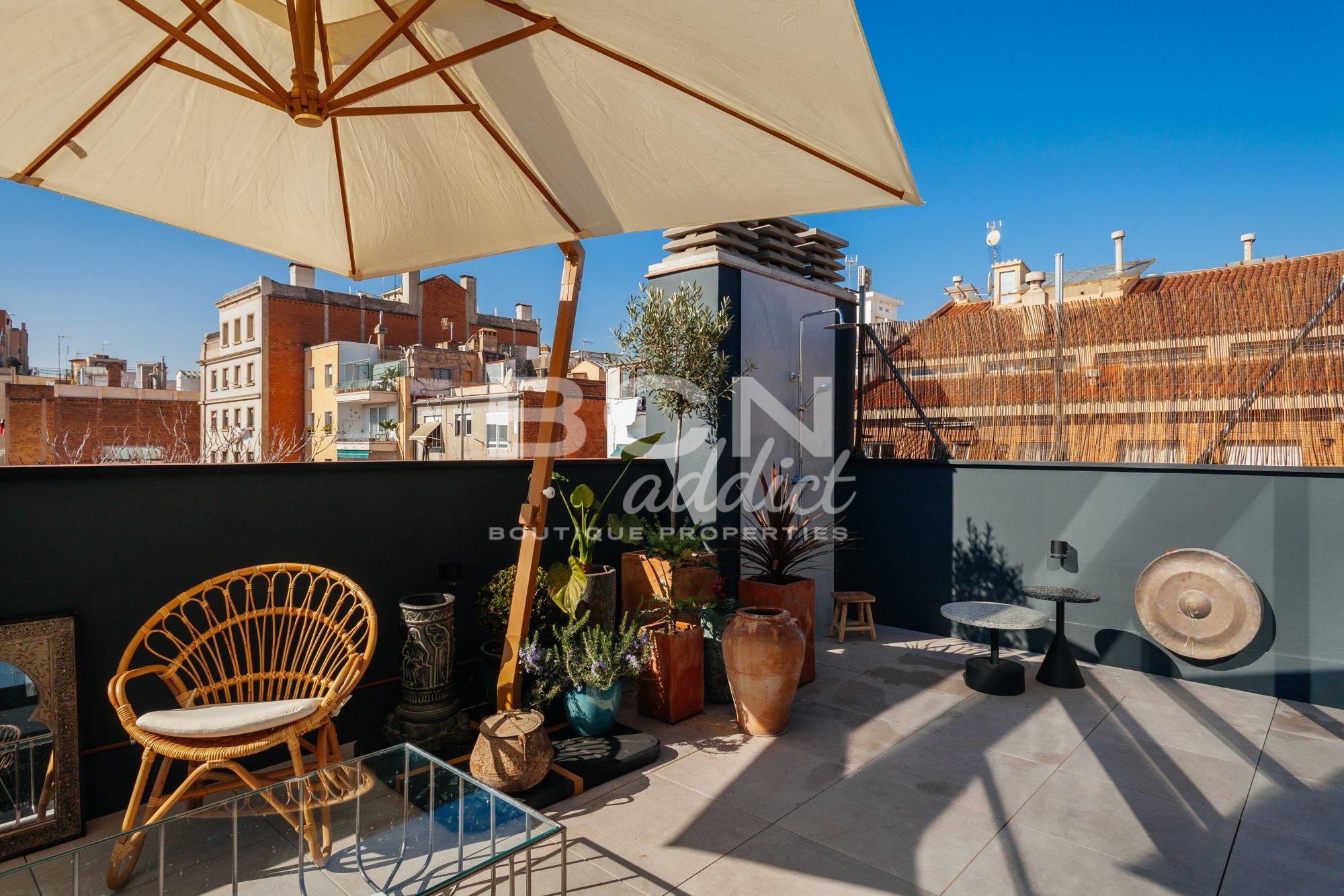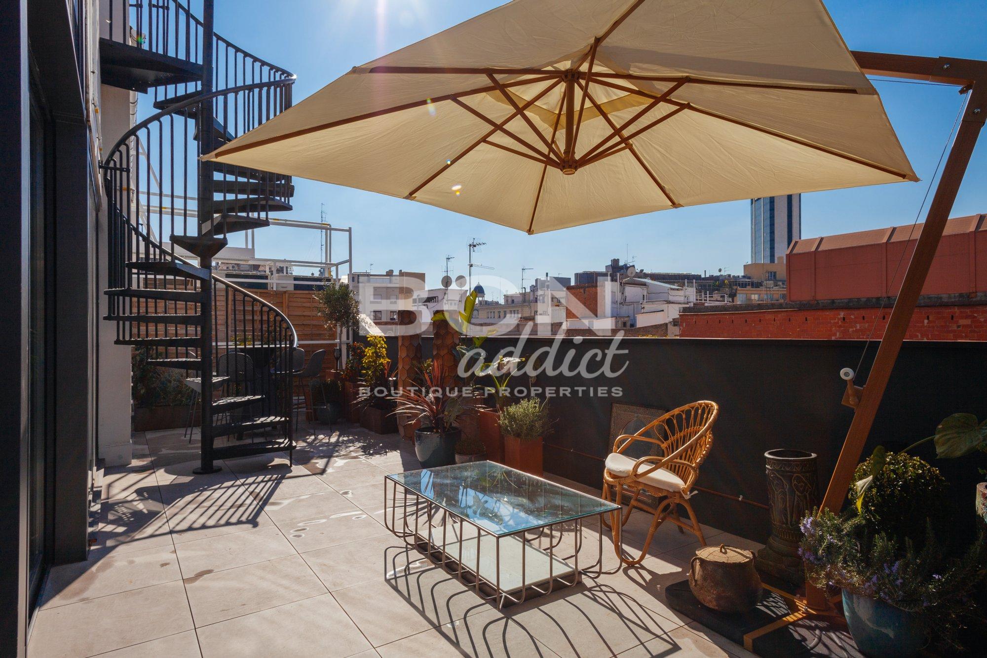 Optional parking is available nearby. The penthouse is situated on Barcelona's most coveted street, steps from shops, public transport, and the vibrant Paseo de Gracia.