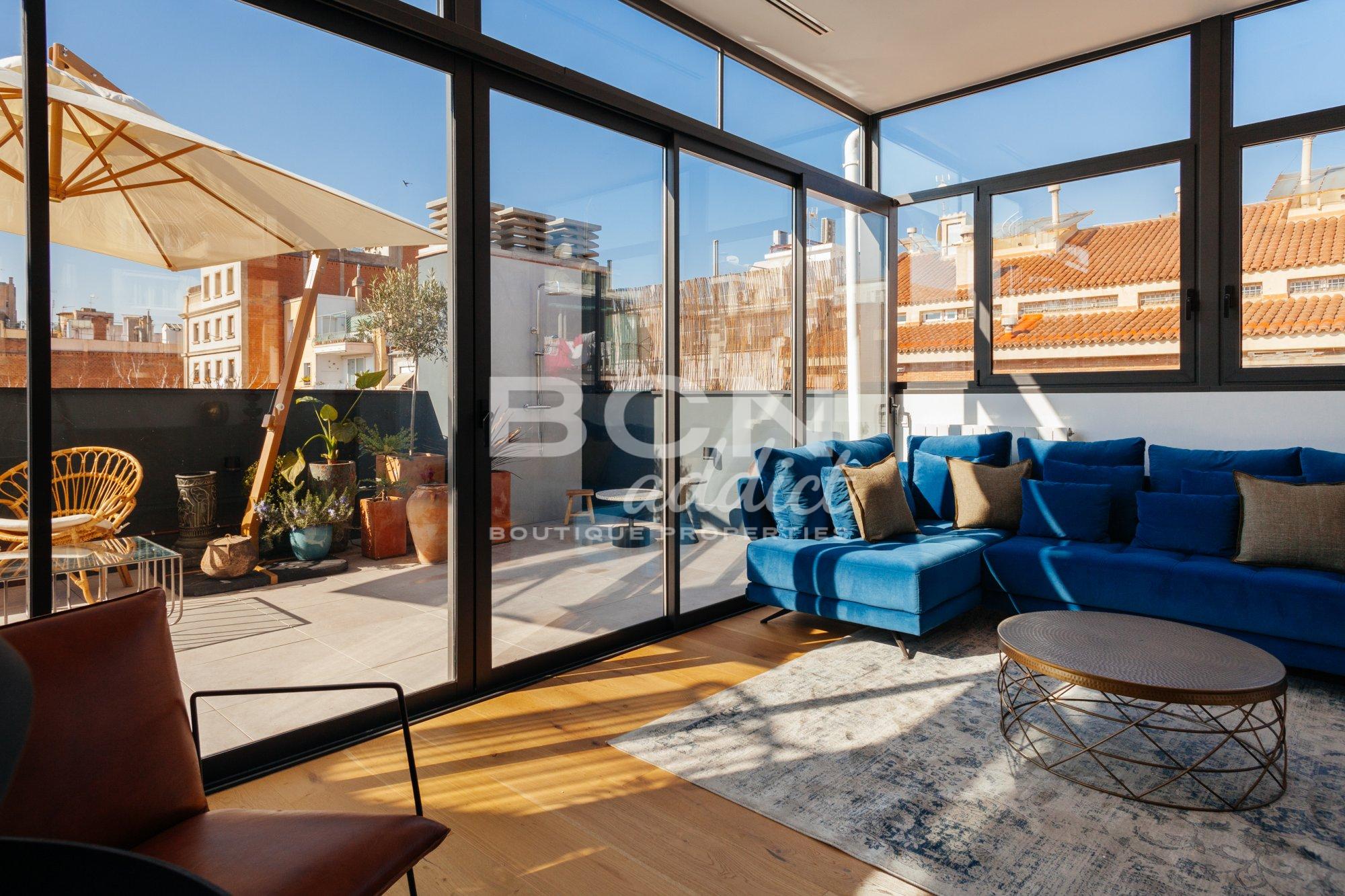 Search This one-of-a-kind duplex penthouse is located in a beautifully fully renovated 1930 building, blending timeless original features with modern luxury. The property offers a total of 279 m² of interior and exterior spaces, creating unparalleled quality of life in Barcelona's best area.