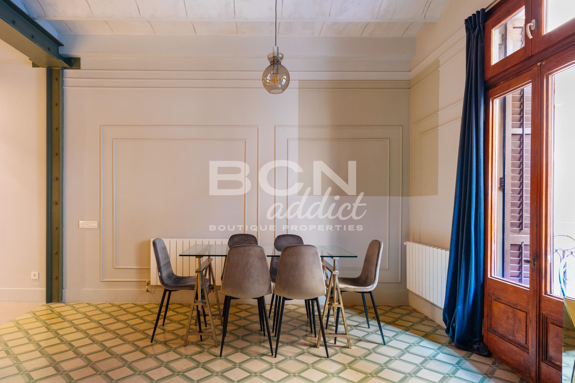 Search This unique property is part of a complete rehabilitation of a historic 1930 building located on one of the most desirable streets in Barcelona. The project features a total of eight meticulously designed flats, and BCNaddict proudly offers six of these exceptional units for sale.