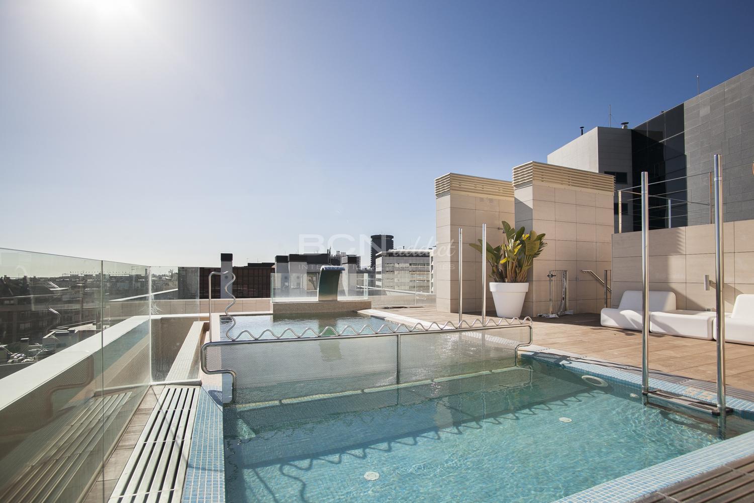 Sur le toit de l'édifice se trouve une terrasse communautaire ainsi qu'une piscine diposant de deux bassins.