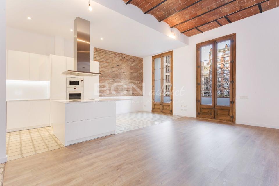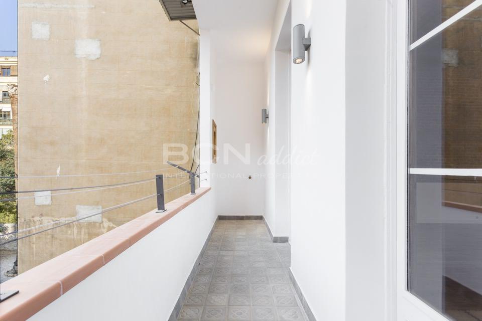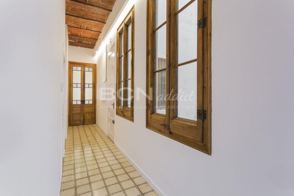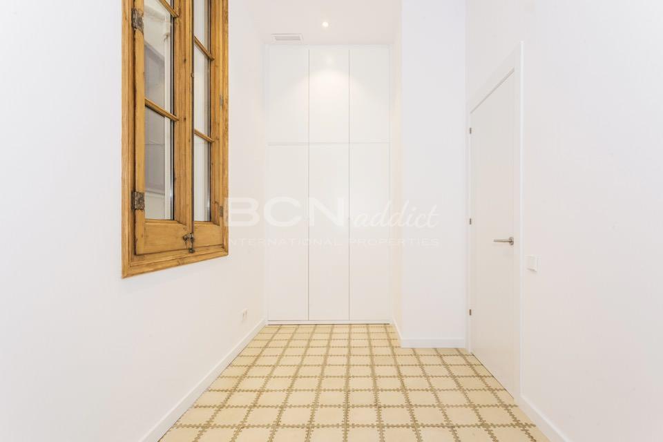 Il s'agit d'un appartement traversant, au troisième étage, orienté d'une part sur la rue Girona avec le soleil de matin et de l'autre côté sur une tranquille cour de pâté de maison avec le soleil de midi et d'après-midi.