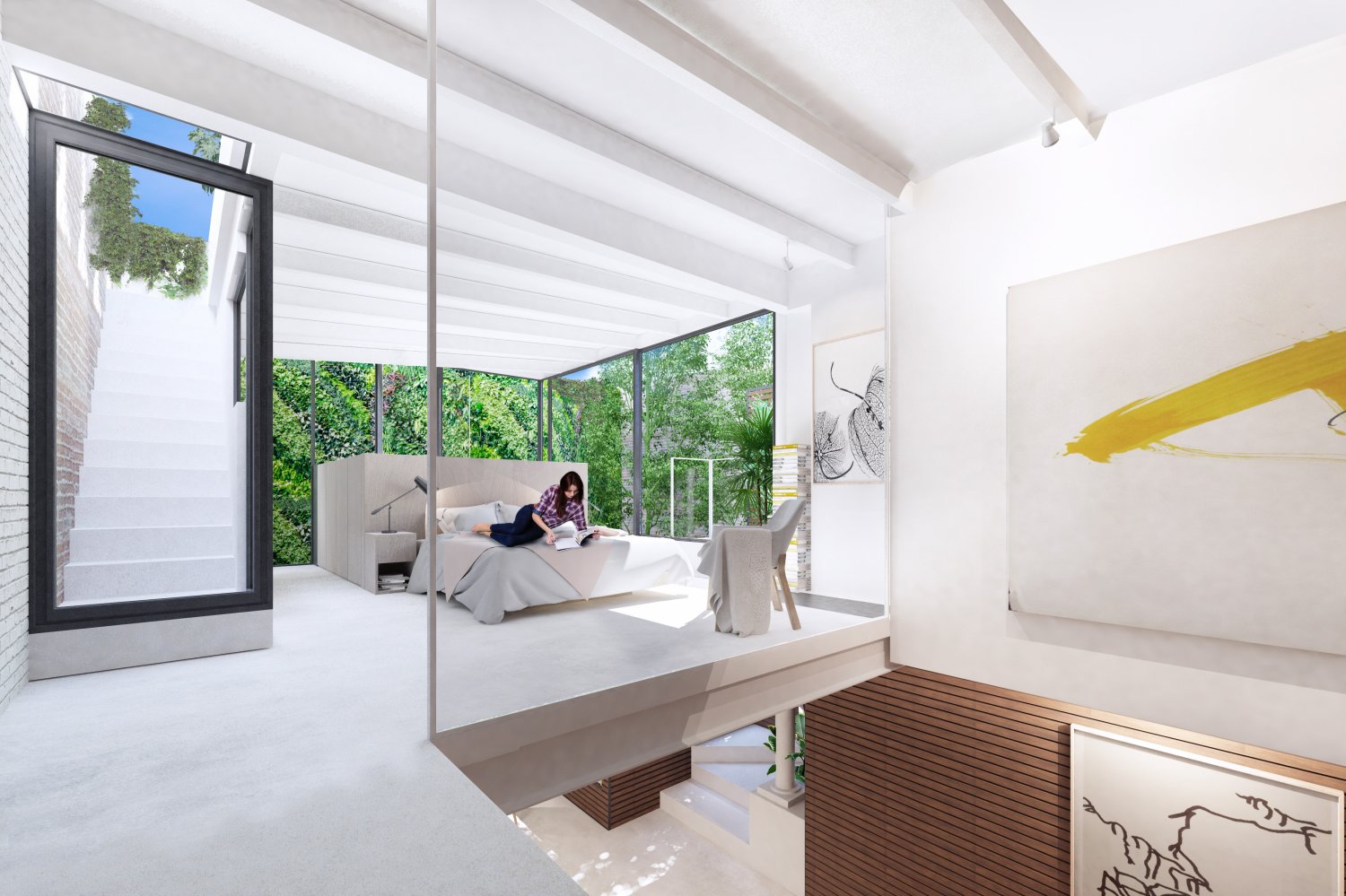 La hauteur des plafonds de verres et la luminosité qu’ils apportent est appréciable.