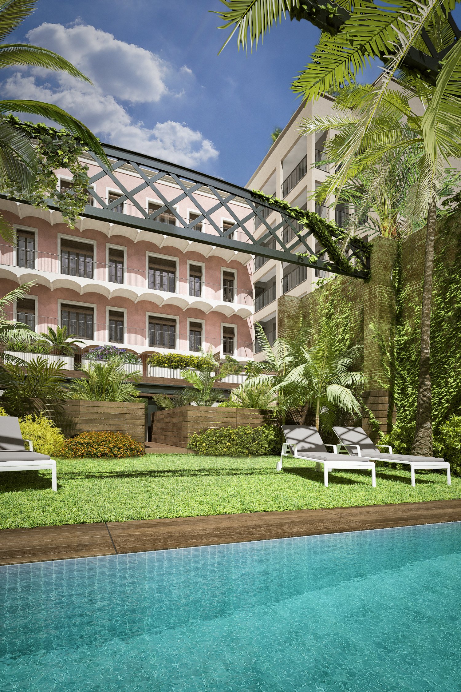 La fachada modernista delicadamente trabajada y restaurada con sus tres ejes verticales, arcos de medio punto y esgrafiados florales alberga en su interior un paradisiaco patio ajardinado de 145m2 con piscina, auténtico oasis de privacidad que nos permite ofrecer una propuesta única del sector de lujo en Barcelona. En la azotea encontramos otra zona comunitaria de 116m2 con piscina y una impresionante vista del skyline de la ciudad.