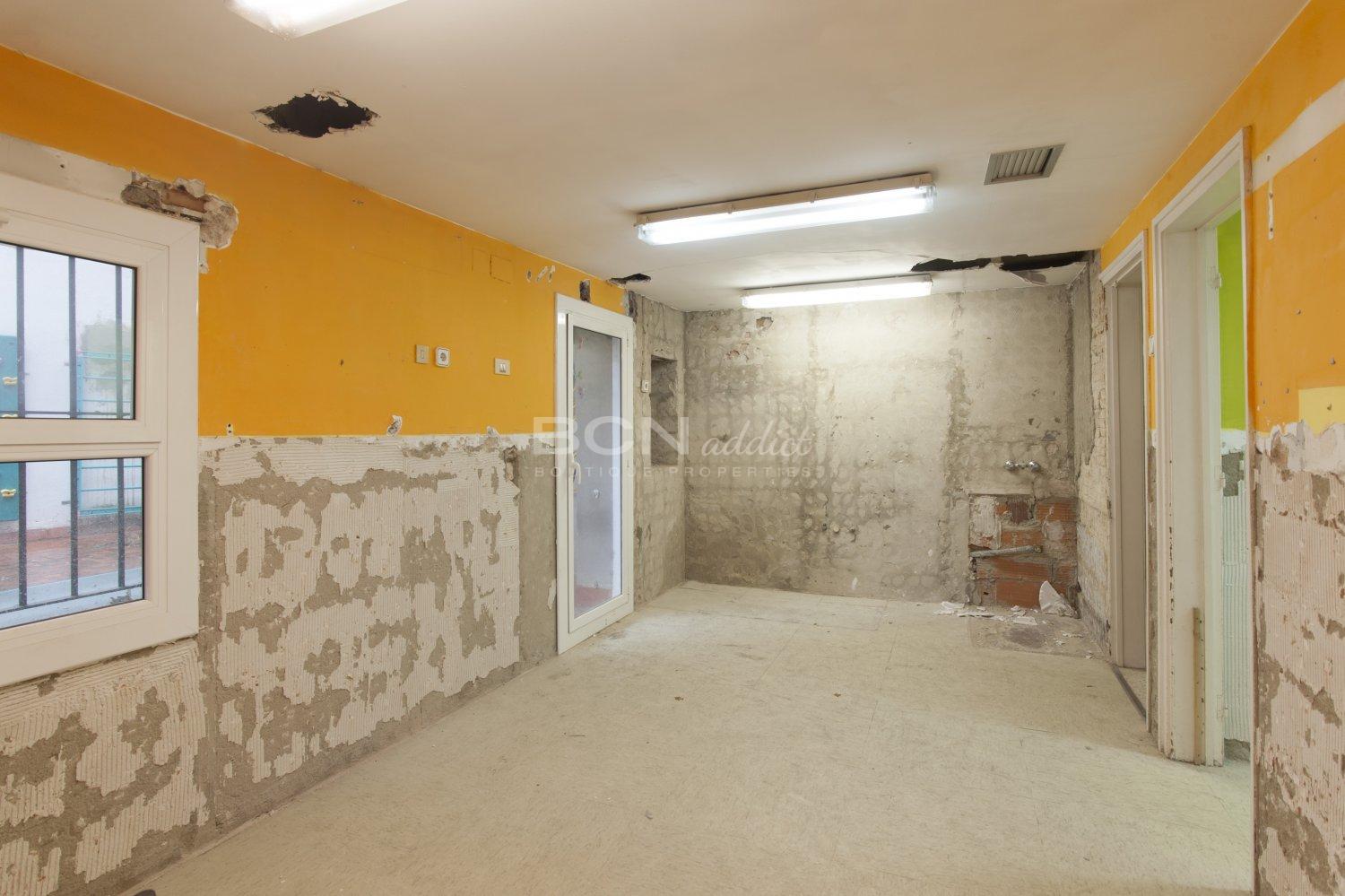 La propriété, sur deux étages (rez-de-chaussée et premier étage) était auparavant adaptée à l'activité d’une école maternelle et est actuellement inoccupée. Elle bénéficie d'une surface construite de 168 m2 et de 44,15m2 de terrasse extérieure. La propriété a déjà le permis de construire pour mener à bien le projet de réforme résidentielle sur les 2 étage.