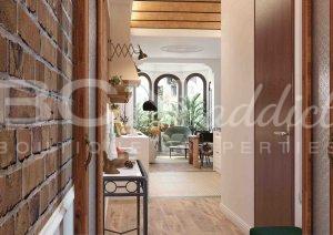 L'appartement a été entièrement rénové au dernier trimestre de 2017. La rénovation combine de nombreux éléments modernistes originaux (tels que les sols en mosaïque, des vitraux, plafons vouté en briques de 3.35 m de hauteur ou des murs en briques) avec de nouvelles installations utilisant des matériaux de qualité et des marques bien connues, telles que Bosch, Grohe et Fujitsu.