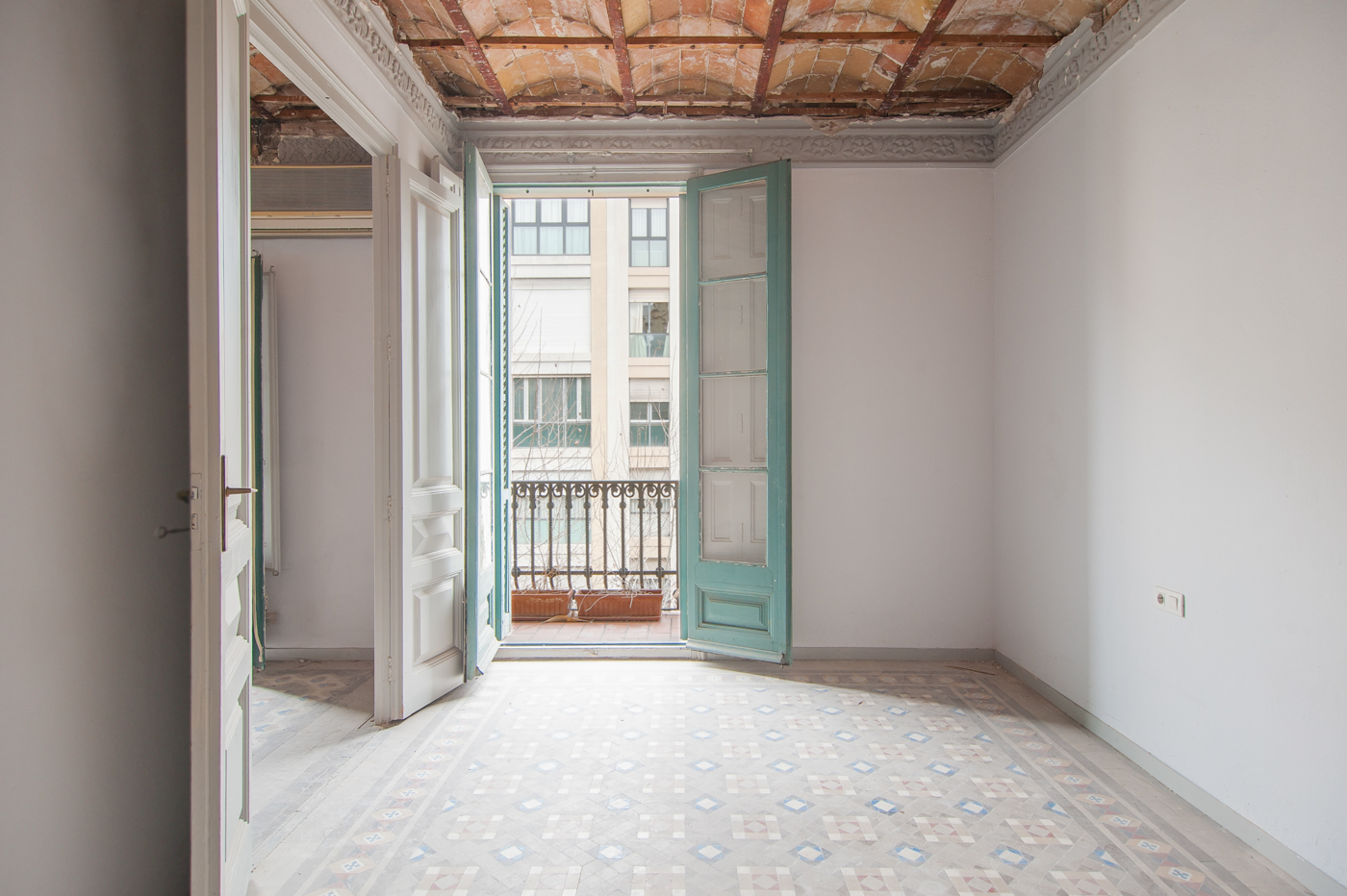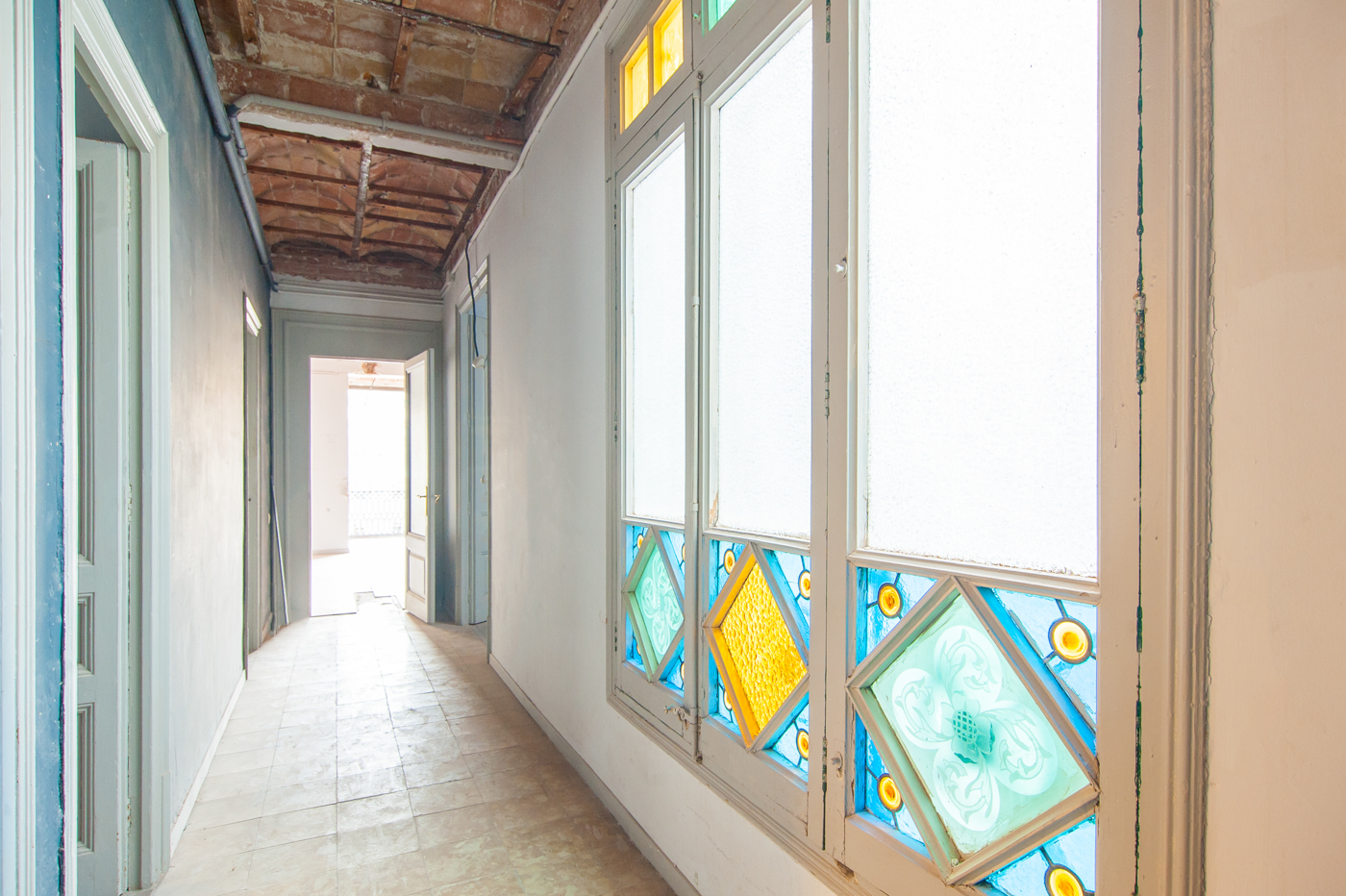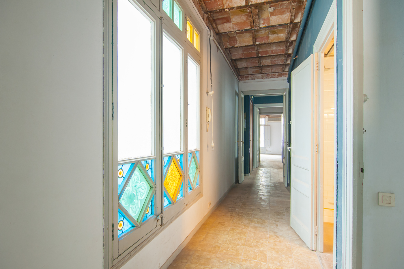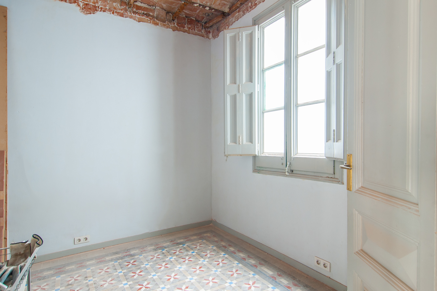 L'appartement offre des élements architecturaux d’époque en bon état tels que le plafond voûté en brique, le carrelage hydraulique ou la menuiserie en bois.