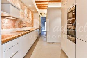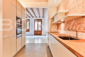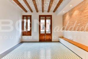 Cet appartement élégant a été entièrement rénové en 2017 et bénéficie de beaucoup de lumière naturelle. Il marie élégamment intérieur un intérieur moderne avec des éléments architecturales authentiques telles que plafond en briques voûtées, murs en briques apparentes, carreaux hydrauliques ou balcons en fer.