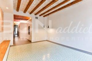 C'est une opportunité fantastique d'acquérir un appartement rénové avec charme et caractère dans un immeuble moderniste avec ascenseur dans cœur de Poble Sec.