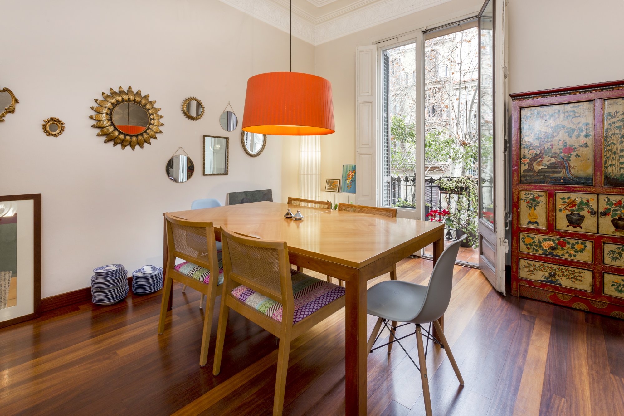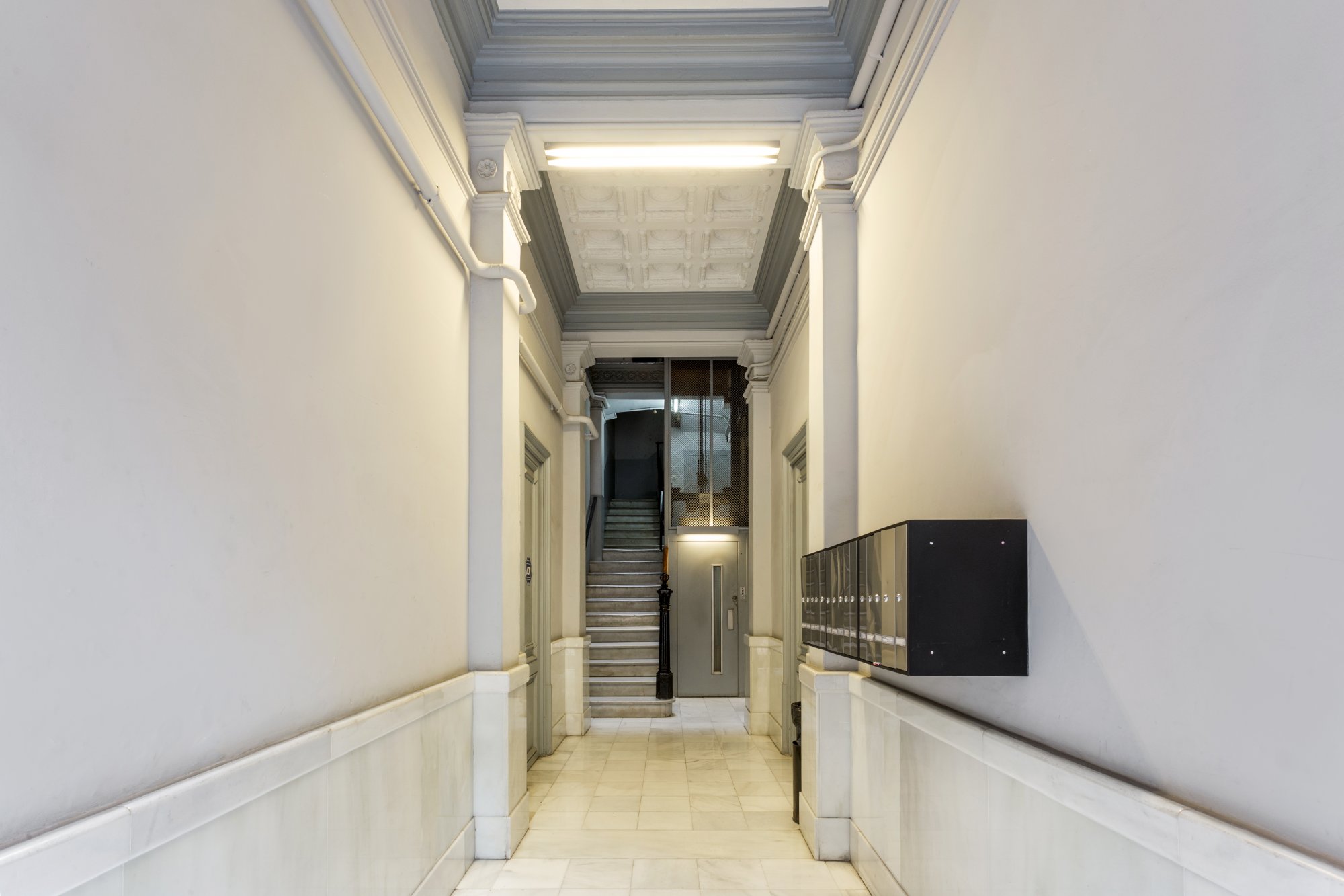El piso se encuentra en un hermoso edificio modernista de 1893 con ascensor. La bonita fachada del edificio ofrece molduras bien conservadas alrededor de aperturas y puertas ventanas con balcones de hierro. Las zonas comunes también muestran dibujos y molduras modernistas en la entrada y la escalera.