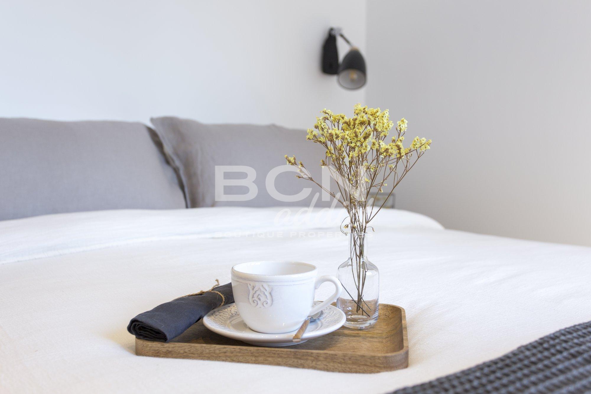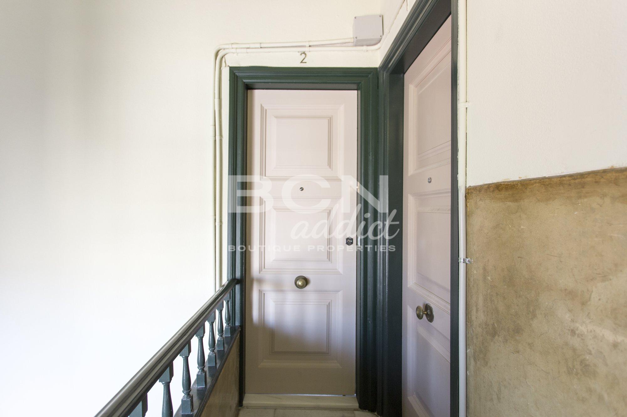 L'appartement bénéficie de beaucoup de lumière naturelle. Les éléments de construction tels les sols hydrauliques, les murs de brique apparentes et la voûte catalane aux plafonds donnent à l'appartement une élégance particulière où l'empreinte de Barcelone est réellement présente.