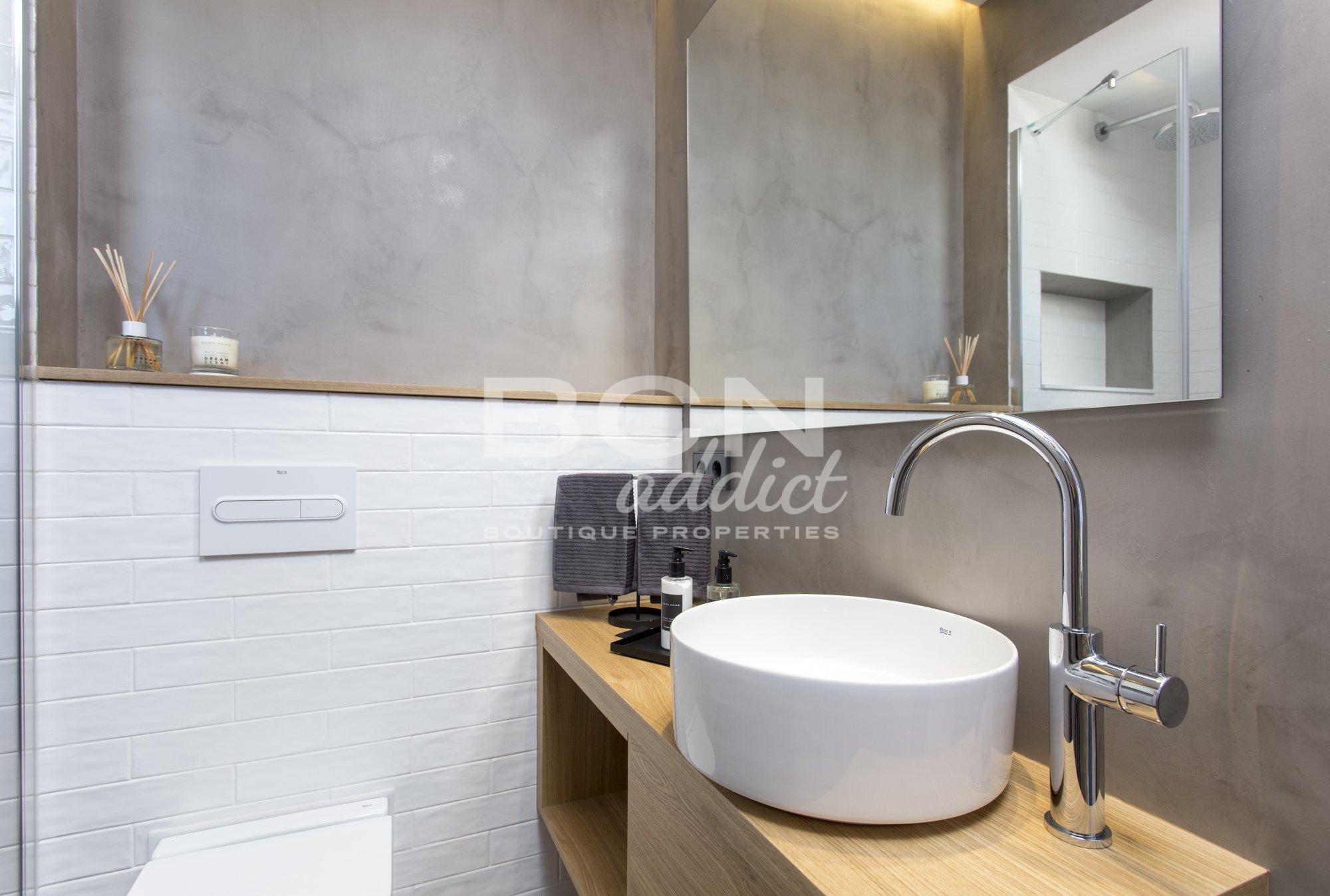 L'appartement entièrement rénové, marie des éléments originaux avec un design d'intérieur contemporain et des matériaux haut de gamme utilisant des marques bien connues, telles que Bosch, Grohe et Fujitsu.